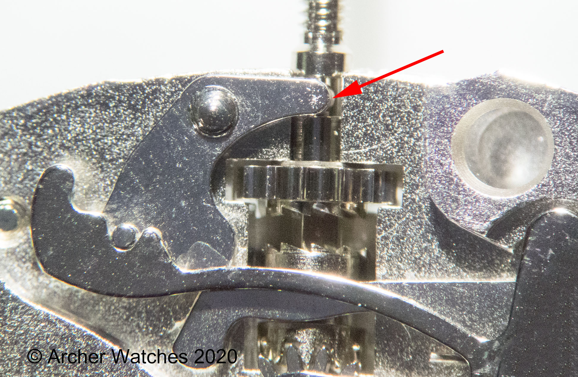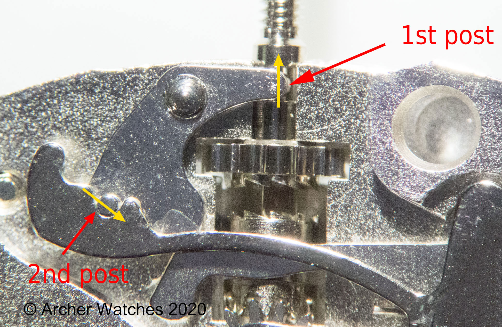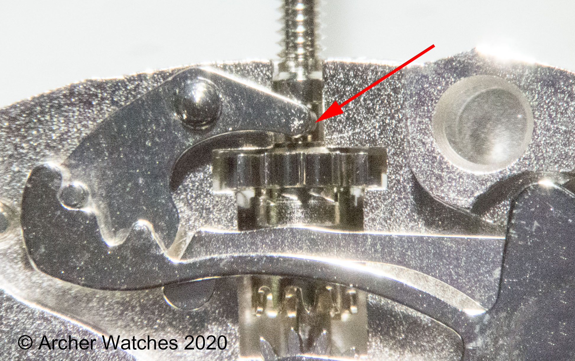 I had some difficulty understanding Archer's diagram, due solely to my unfamiliarity with how the mechanism works, and I believe I've parsed it, and took the liberty of annotating the diagram in the hopes of confirming my understanding and in the possibility that it would help others. Of course, all errors here and the clumsy lack of precision in terminology are mine