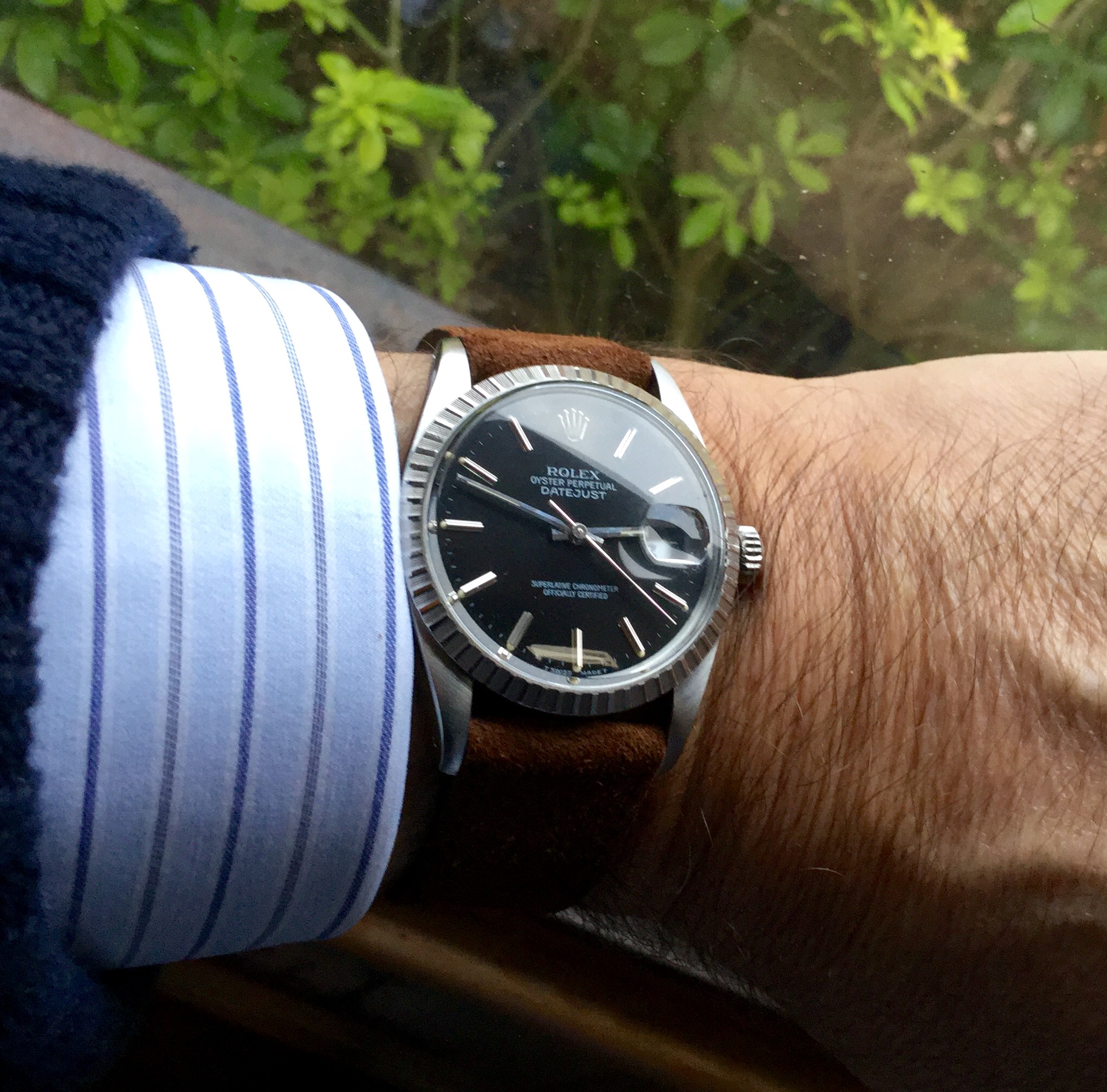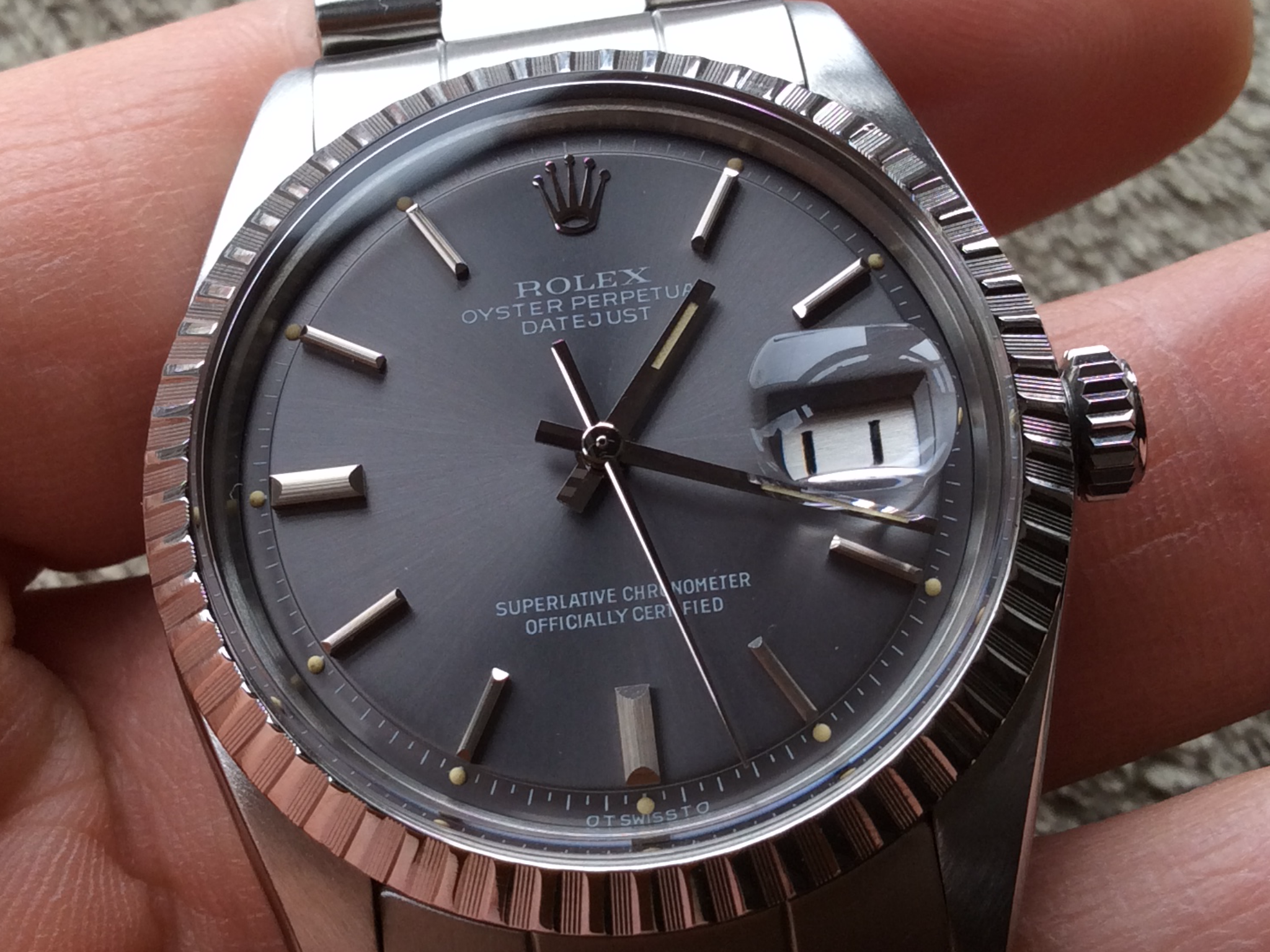 The grey tapestry dial with coin edge Bezel someone posted last week... the grey tapestry is visually eye catching from a distance. The grey goes with anything. Dresses up and down. The non fluted bezel makes it stand apart to Rolex snobs. 36mm, but not sure if I like the Jubilee on it.