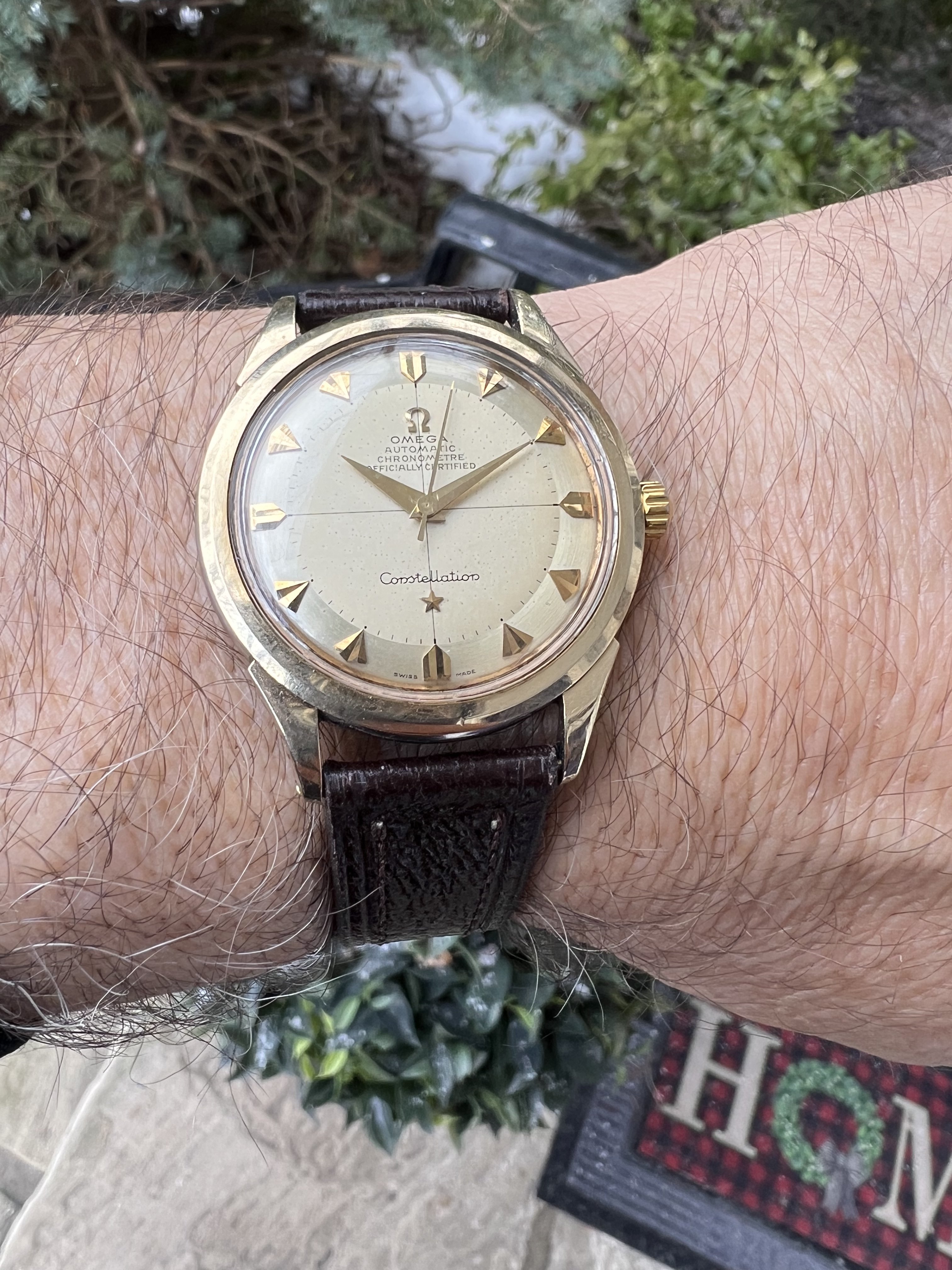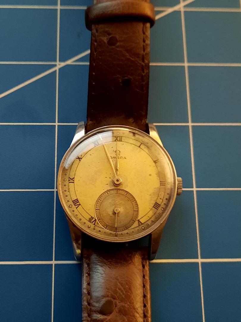 ·Bought this like 7 years ago as a fixer-upper: it needed some TLC. Some people have these repainted, but I feel it looks much better like this, even in this condition. I am usually very good at pairing straps with a case, but this one is tough. I've actually worn it very little. I'd like to get a better strap and wear it more regularly.