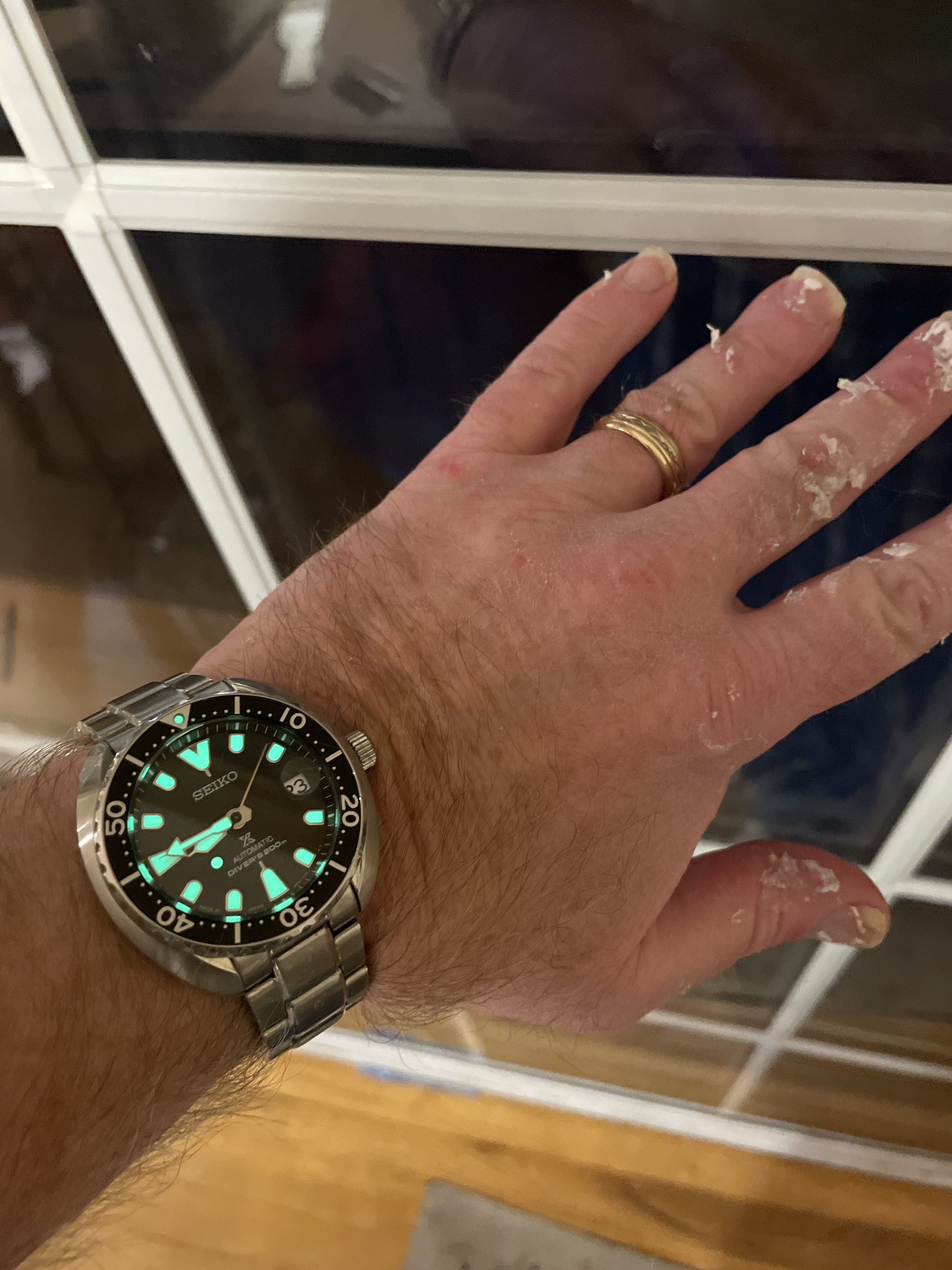 It’s not like an everyday thing but it happens. I’m thinking rubber or a bracelet may be the best choice for quick sanitation. Also getting in and out of the heated cab of a plow to shovel or snow blower leaves you with a wet nato that can intermittently freeze up. I’m probably overthinking this. I can always just take of the watch but that makes me feel naked.