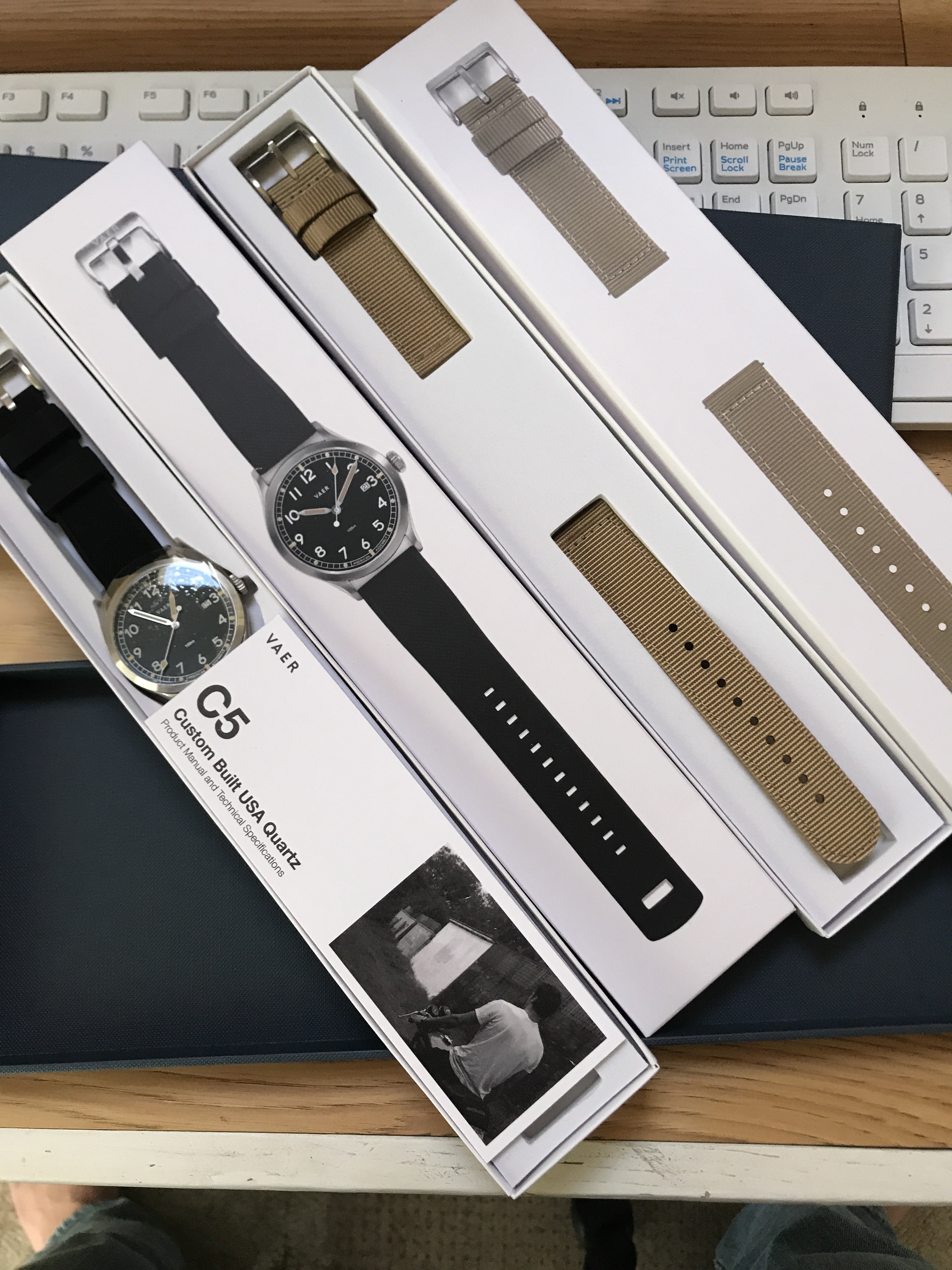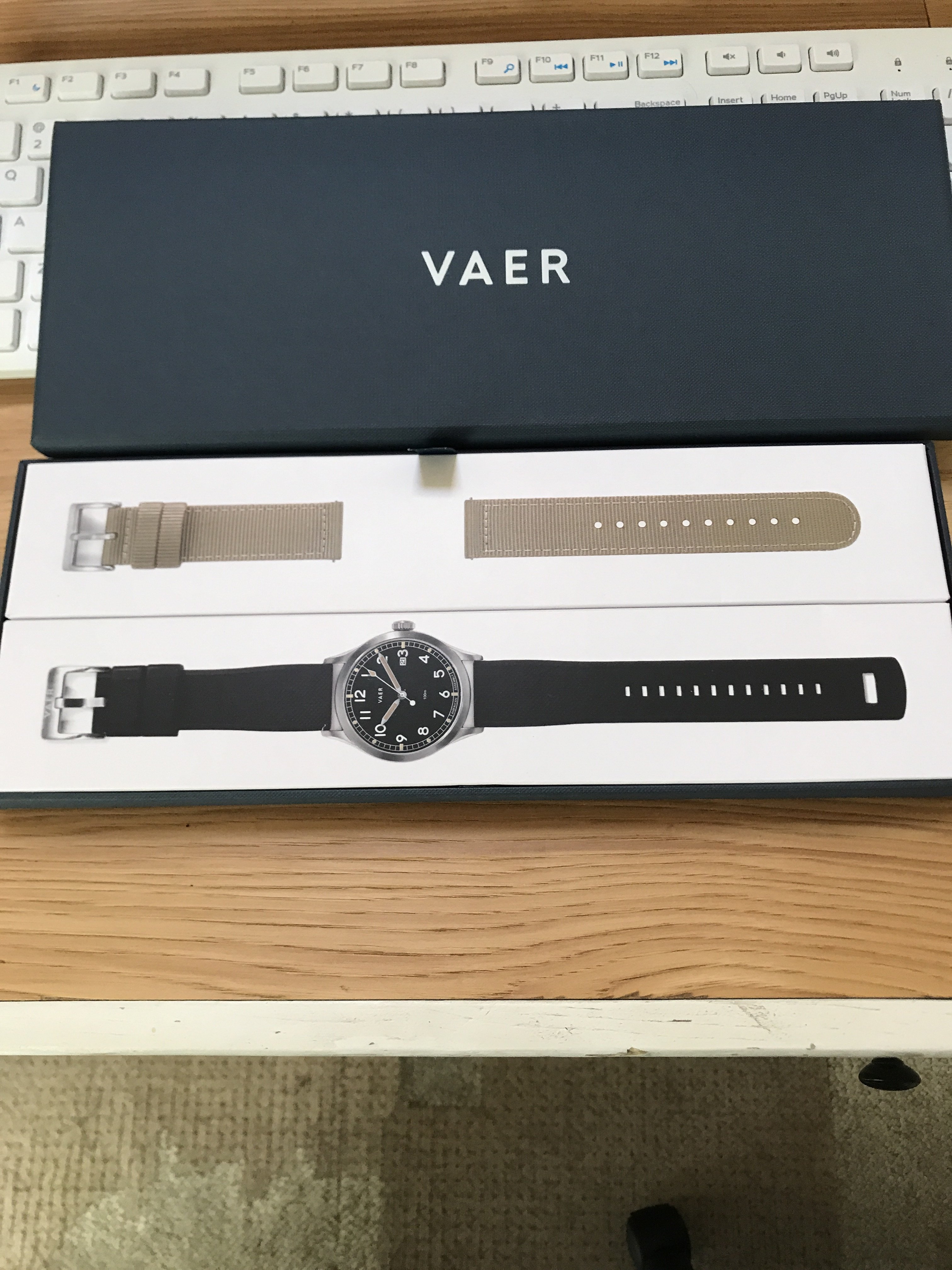Vaer has this promo feature to slam dunk the sale. A wheel of fortune. When you give them your Email and you get one spin. My spin got me a 15% discount on the watch ($30😁). So out the door and delivered (free) just under $200 US. The watch comes with two straps and all the typical trimmings.