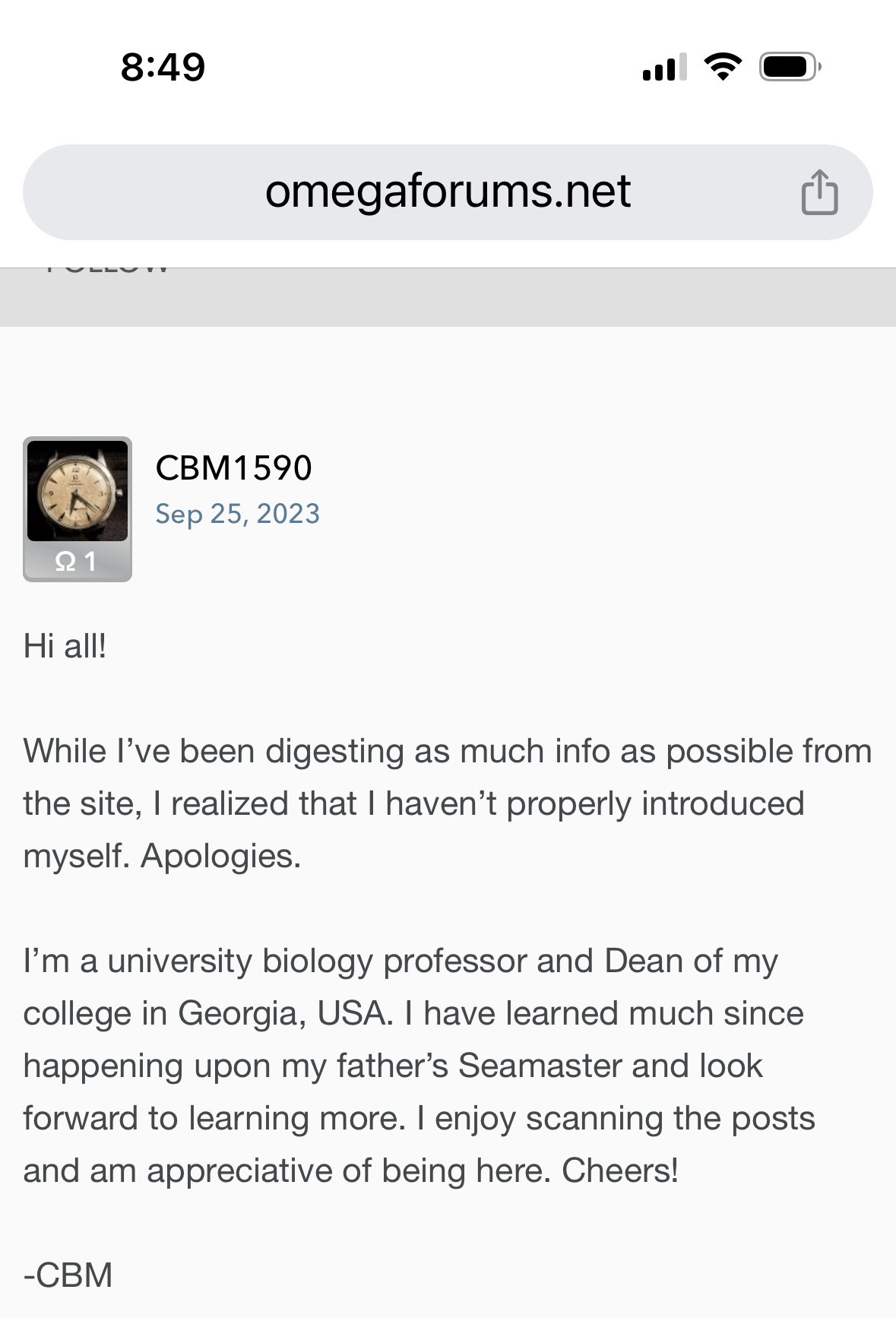 I understand the scrutiny required here and I have noted the amount of knowledge and intelligence of forum members. I’ll also note that I haven’t tried to sell anything. In fact, the only thing I’ve requested is information that I clearly didn’t know or understand. And people have been gracious…I ended up finding this place after being gifted an old watch that belonged to my father. That bumper is now in Indiana getting serviced.