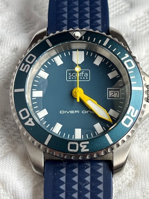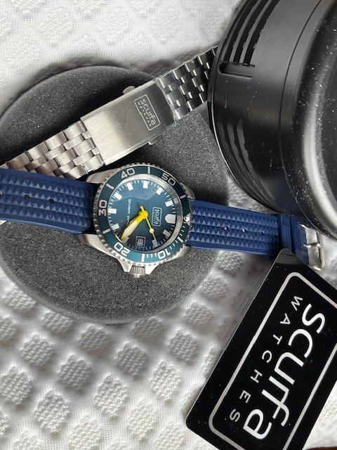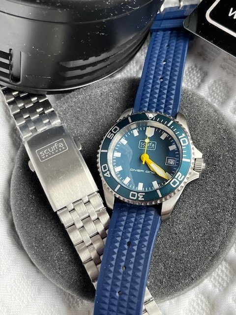 ·For sale only this D1 500 on the summer blue Scurfa rubber strap, along with the accompanying OEM steel bracelet, in as-new condition. This watch was purchased by me directly from Scurfa in late 2023, and is unworn. Full kit includes the Scurfa tube, outer box and warranty card.