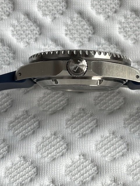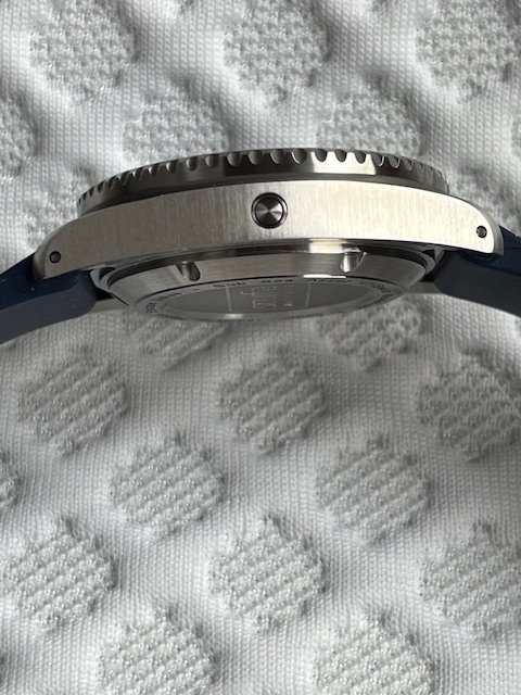 Designed and specified by a professional saturation diver, the Scurfa watches are remarkable for their consistency of design (after the Rolex DSD, etc), quality of workmanship and wearing comfort. This is the latest quartz version with an ETA HAQ F406.12, spec'd to 10s/y, and with PreciDrive and HeaviDrive. WR is 500m, lume is BGW9 blue, thickly applied, and even.