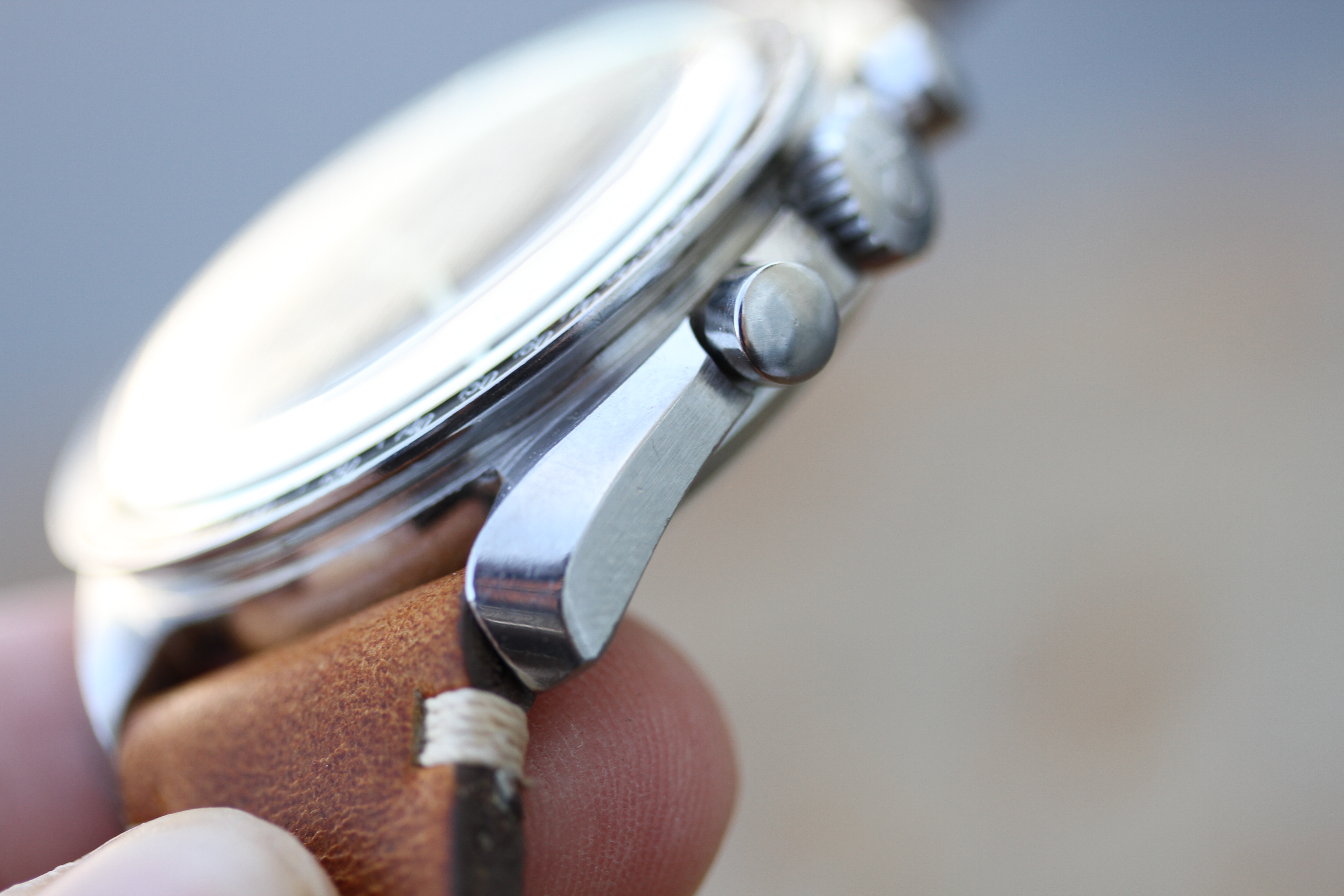 Excellent vintage condition case. No corrosion, no pitting, no dents or dings. Case appears to have never been polished and not worn much showing very crisp lugs and defined edges.