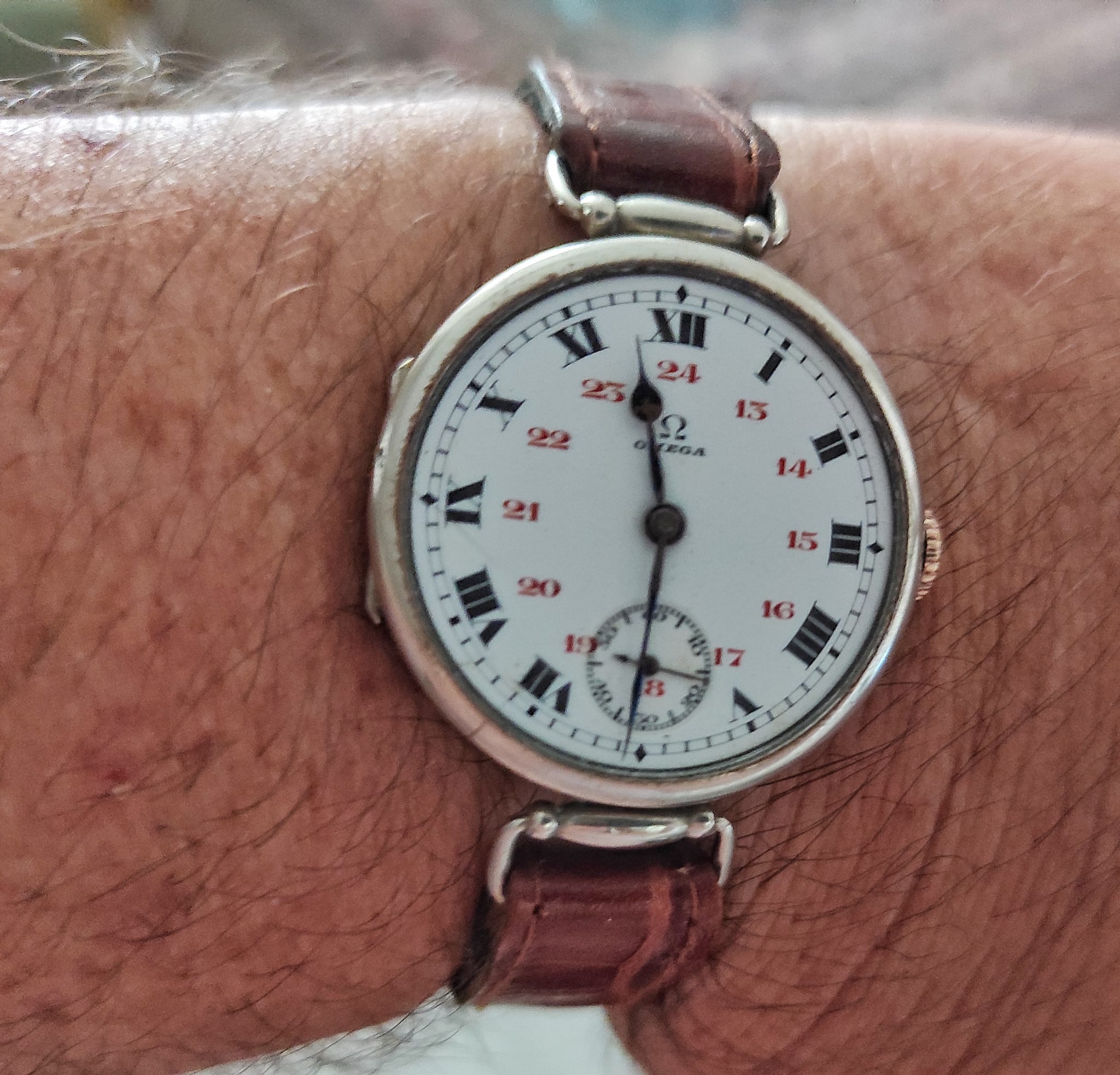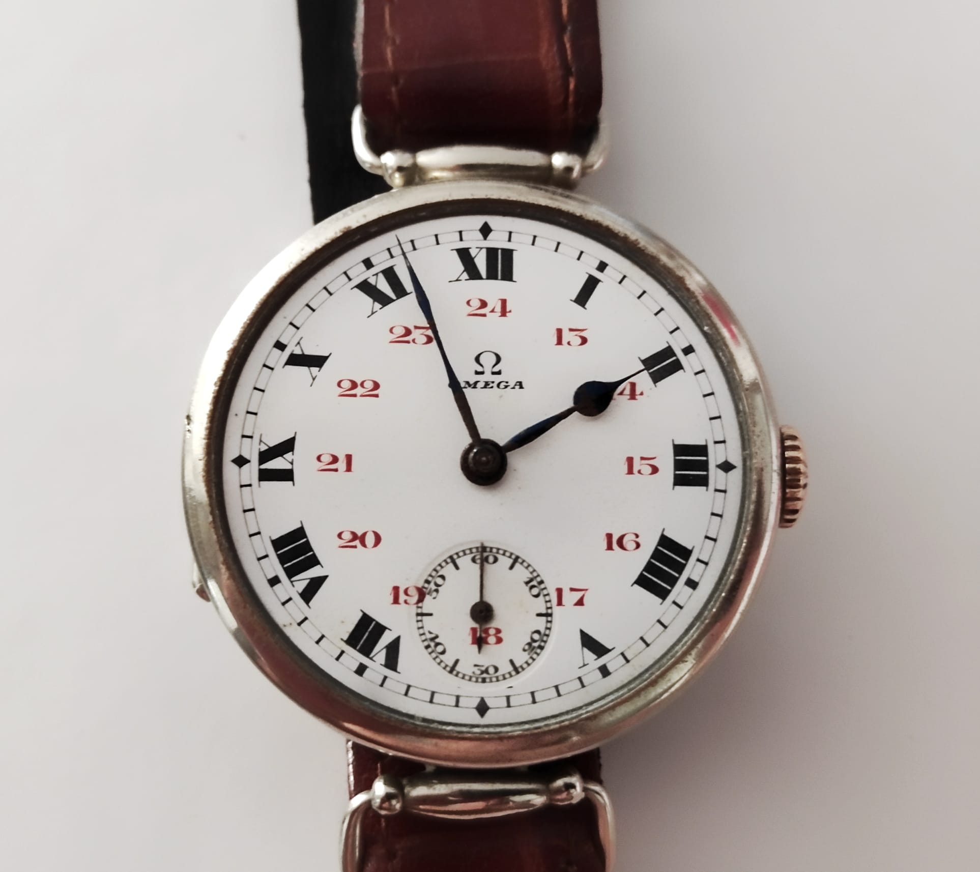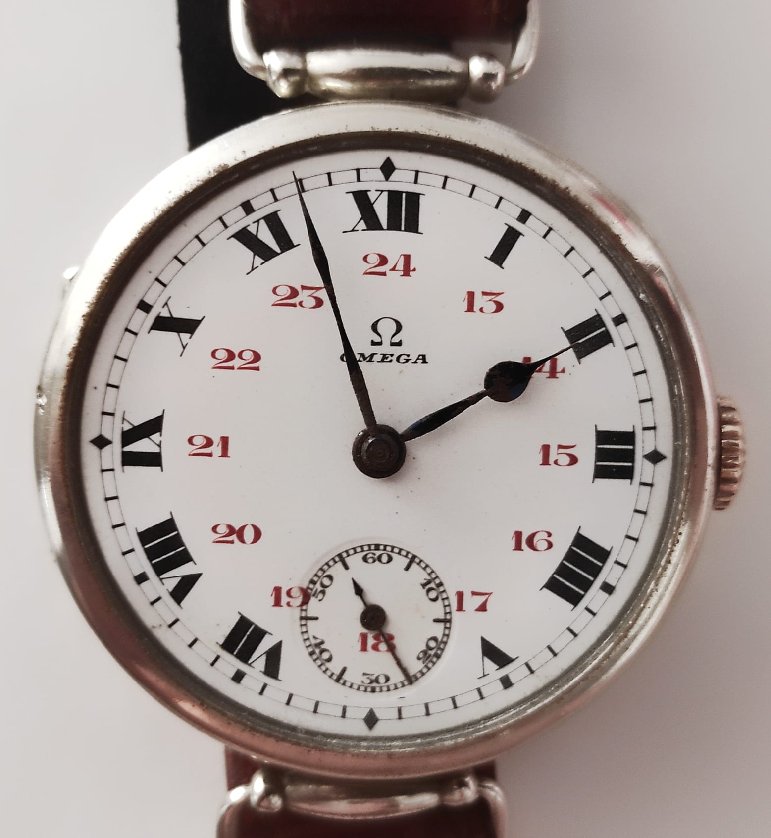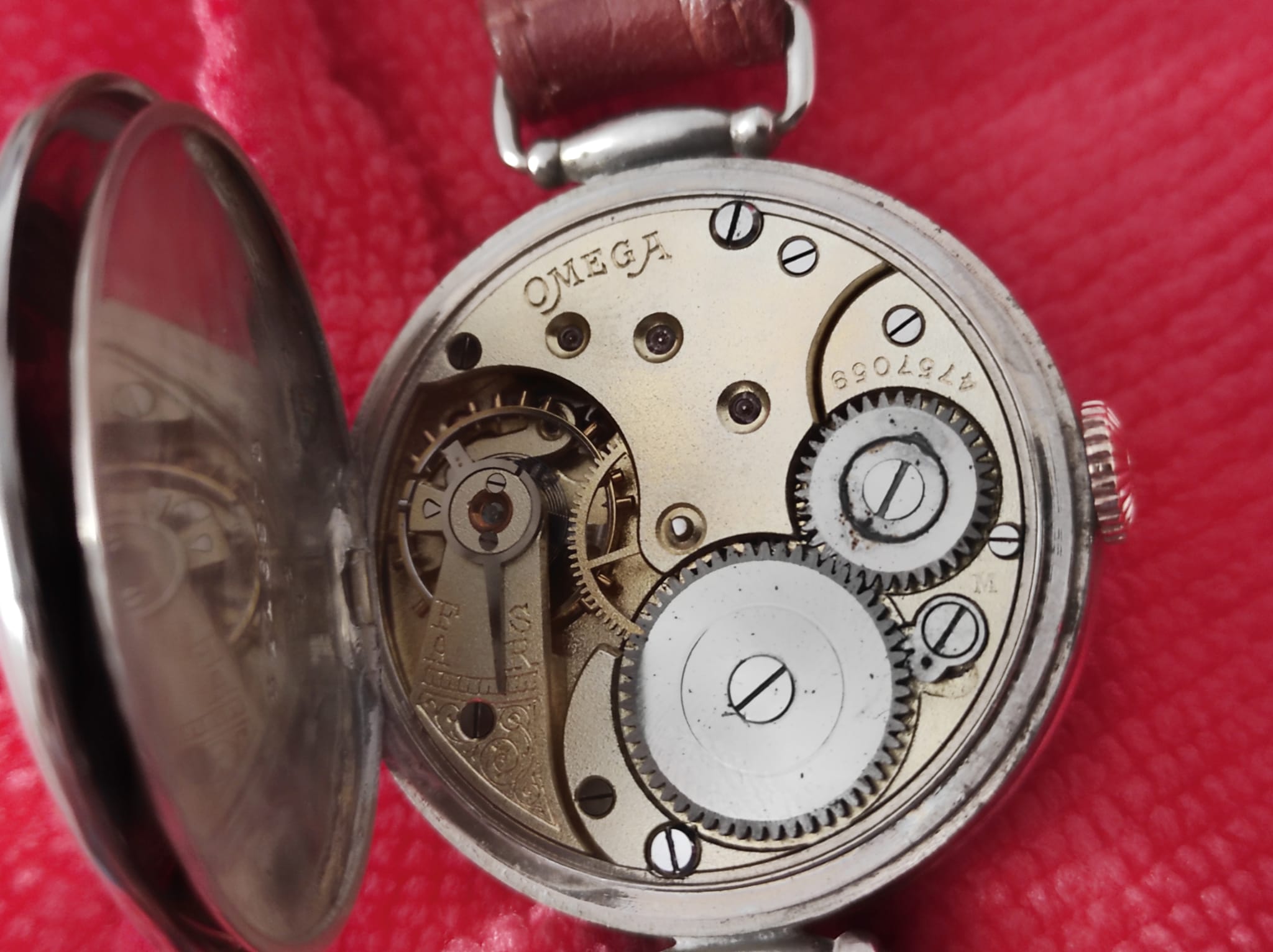 This Omega officer watch is powered by caliber 13" ( 28,9 mm x 4,5 mm ) serial number 475xxxx, produced in the early 1915, was the biggest caliber that Omega use for trench watches, gives this watch a size case of 33,00 mm wide, excluding the winding crown, that's really a big size case considering that year.