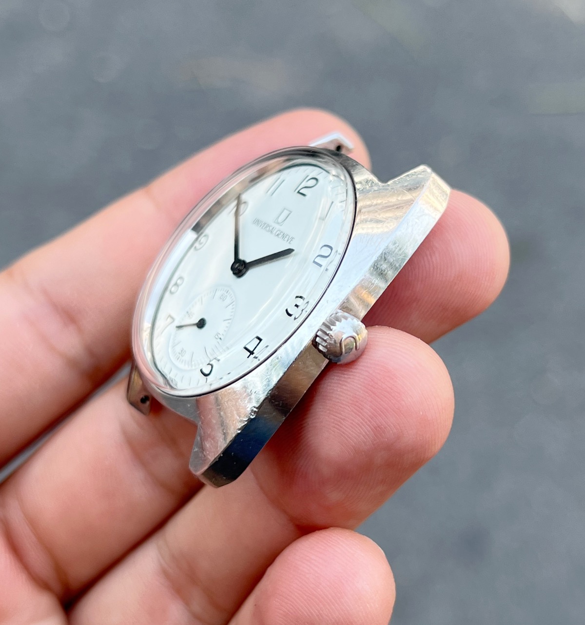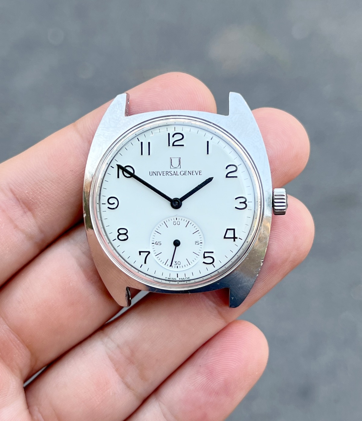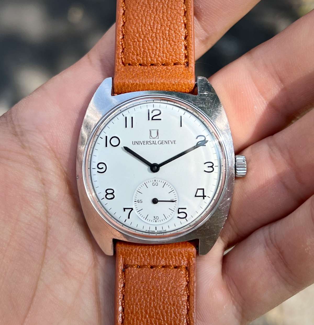 Up for grabs this spectacular example of Universal Geneve FS aka "Ferrovie dello Stato" (Italian railway company) from 60s. This specific axample is a "mark 2" version. I bought this watch from the grandson of the first owner, who worked for the company in the past.
