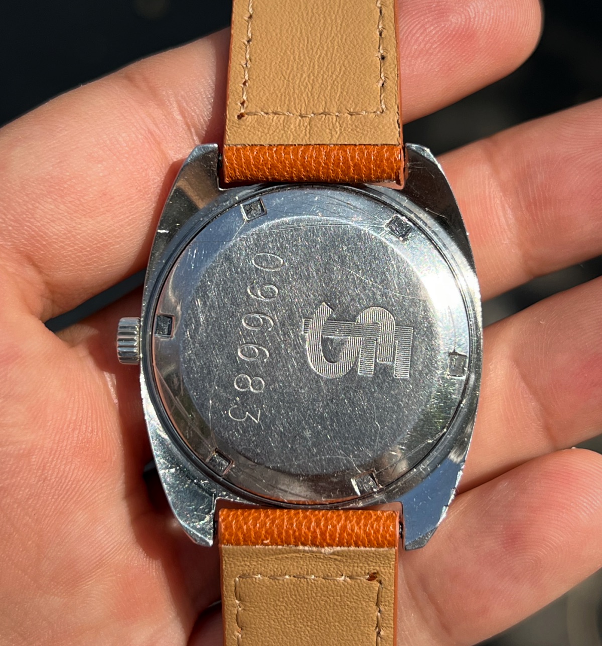 Crown is original and signed, case looks a bit worn with some marks, but egdes are very pronounced, movement looks almost unused and it was serviced last week by my trusted watchmaker. It is running strongly at +1s/d with 270 amplitude.
