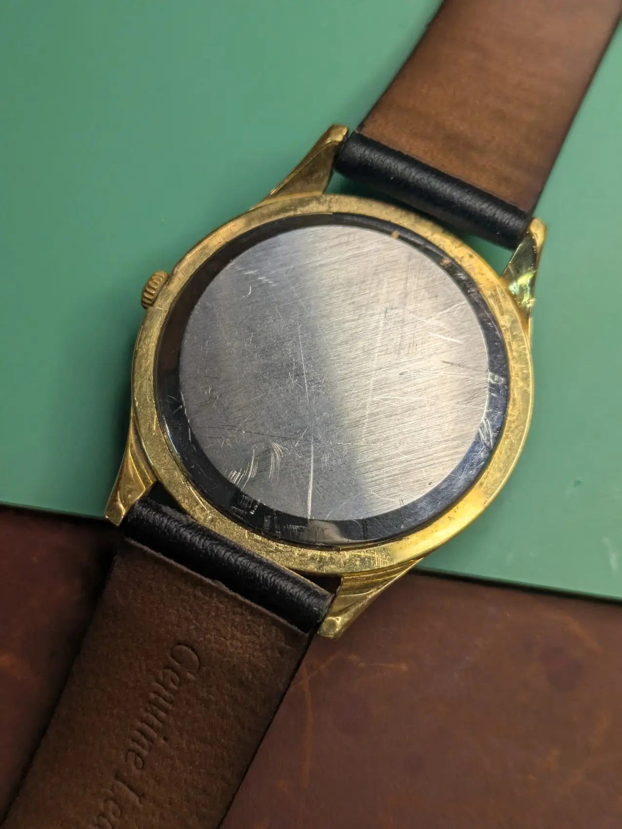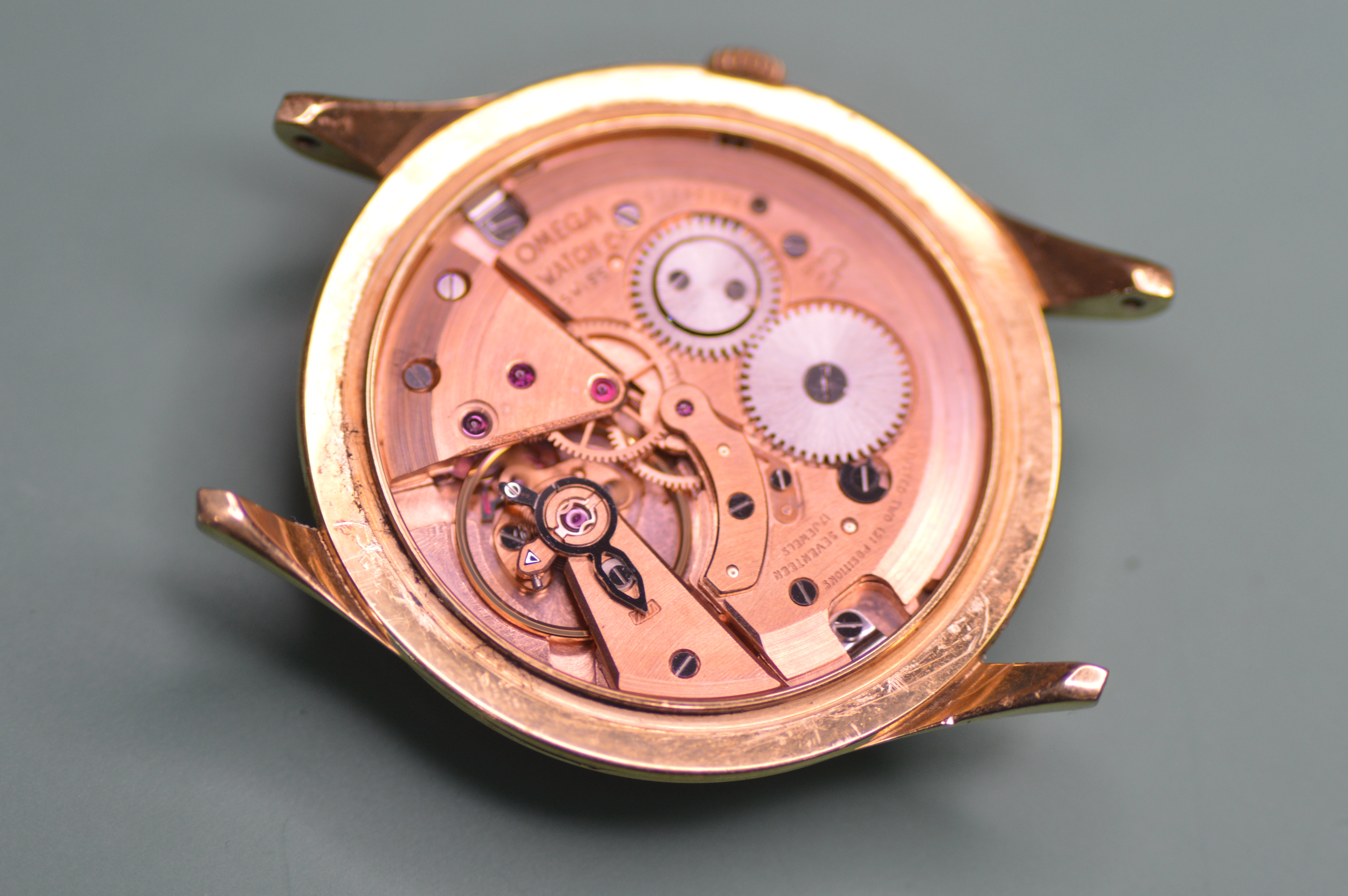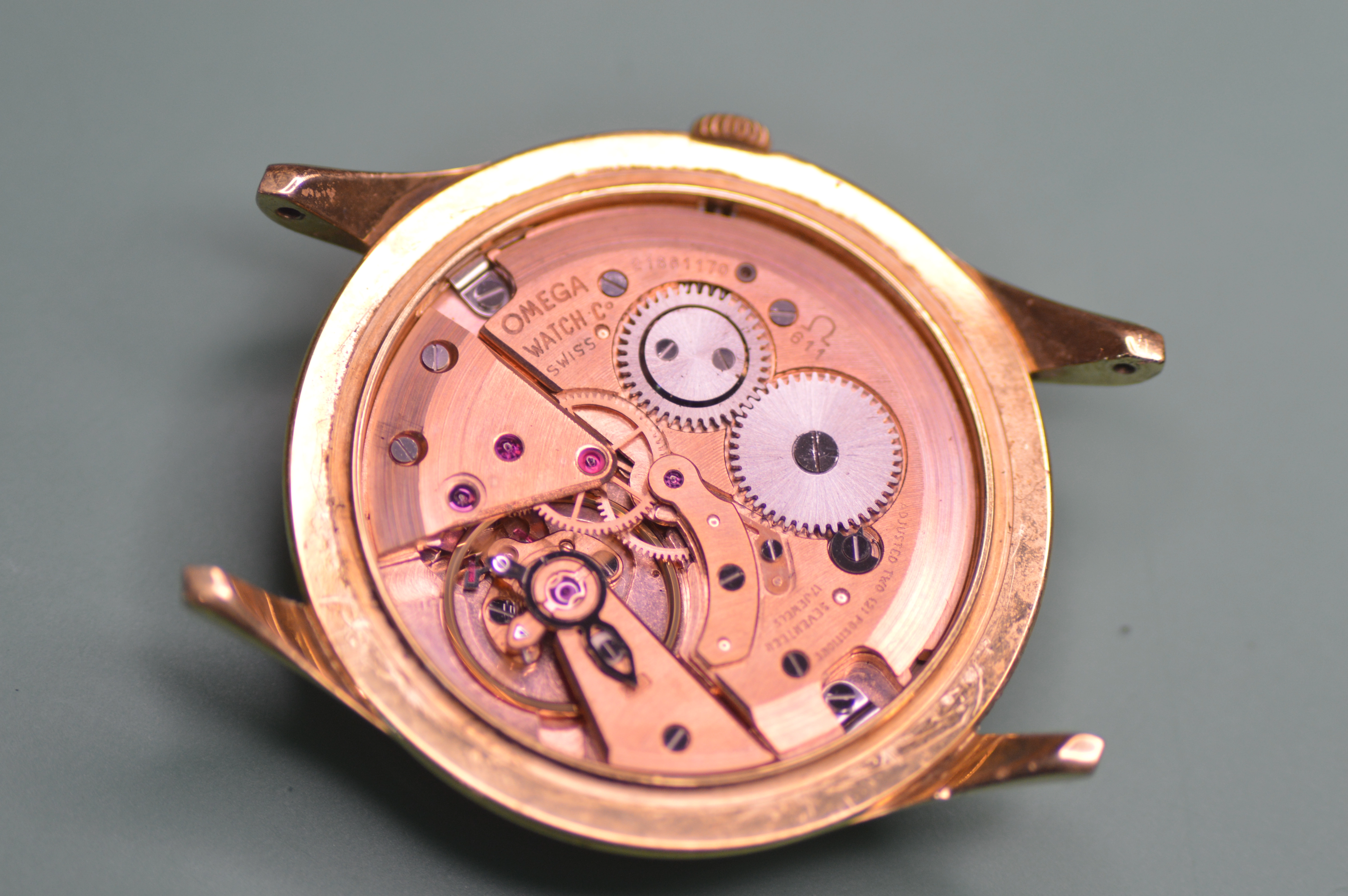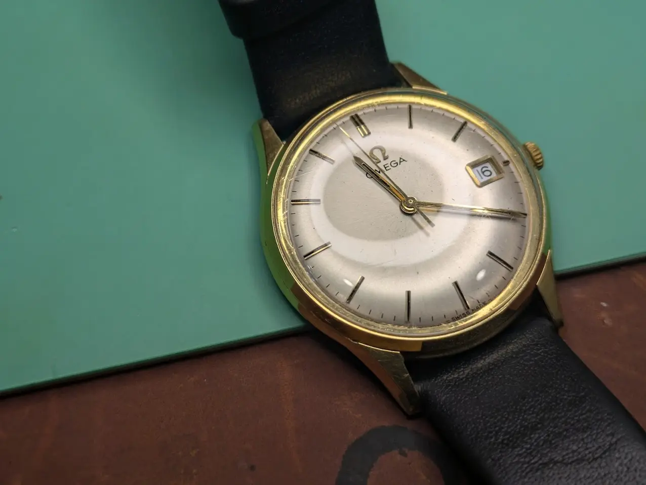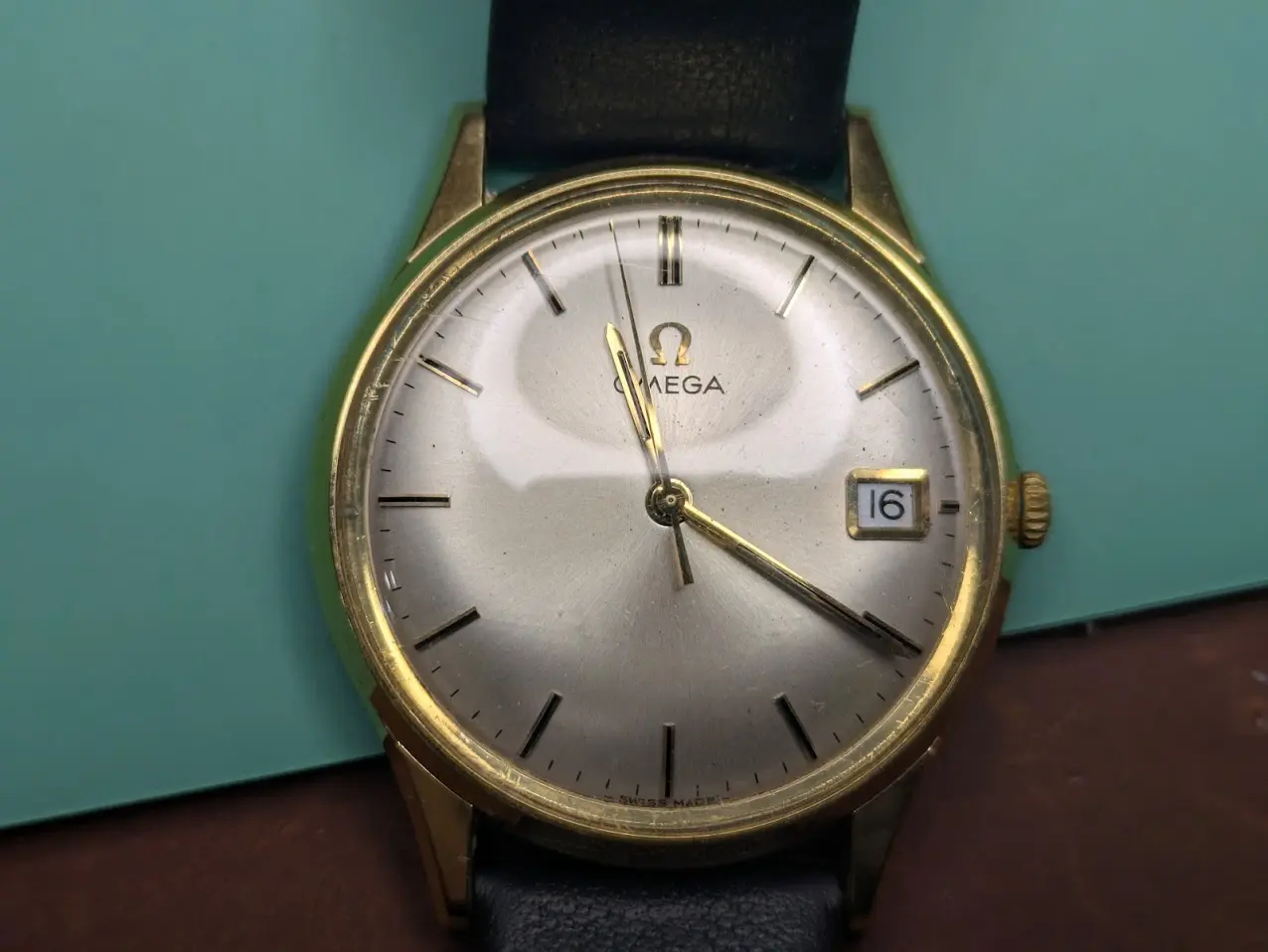 I DID notice while trying to get a timegrapher reading, that the crown is CRIMINALLY small. It is an Omega logo and thus probably original, but unbelievably small, unacceptably so for a handwinder! ALSO, someone installed the strap with quick-release strap bars, so I ended up having to cut them to remove the strap, which while worn, is actually quite nice.