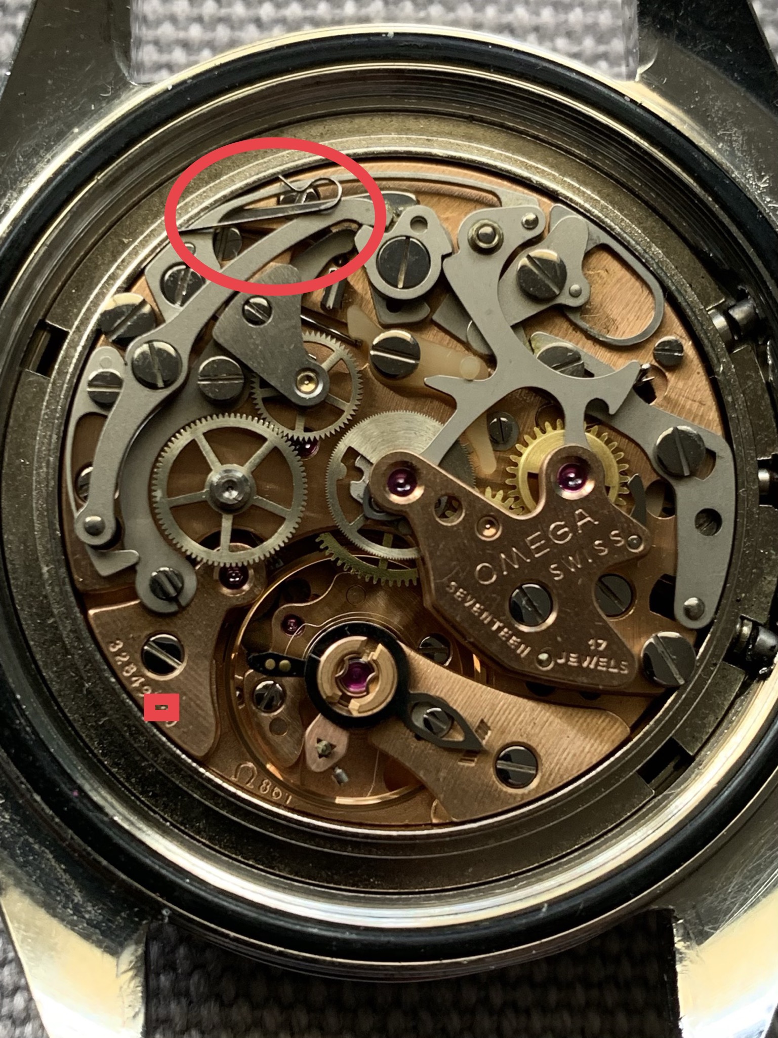 I'd also ask the watchmaker to check the depthing (teeth engagement) of the chronograph driving wheel to coupling yoke as it looks too deep in the photo shown - the resolution is probably not high enough to be sure but, worth checking.