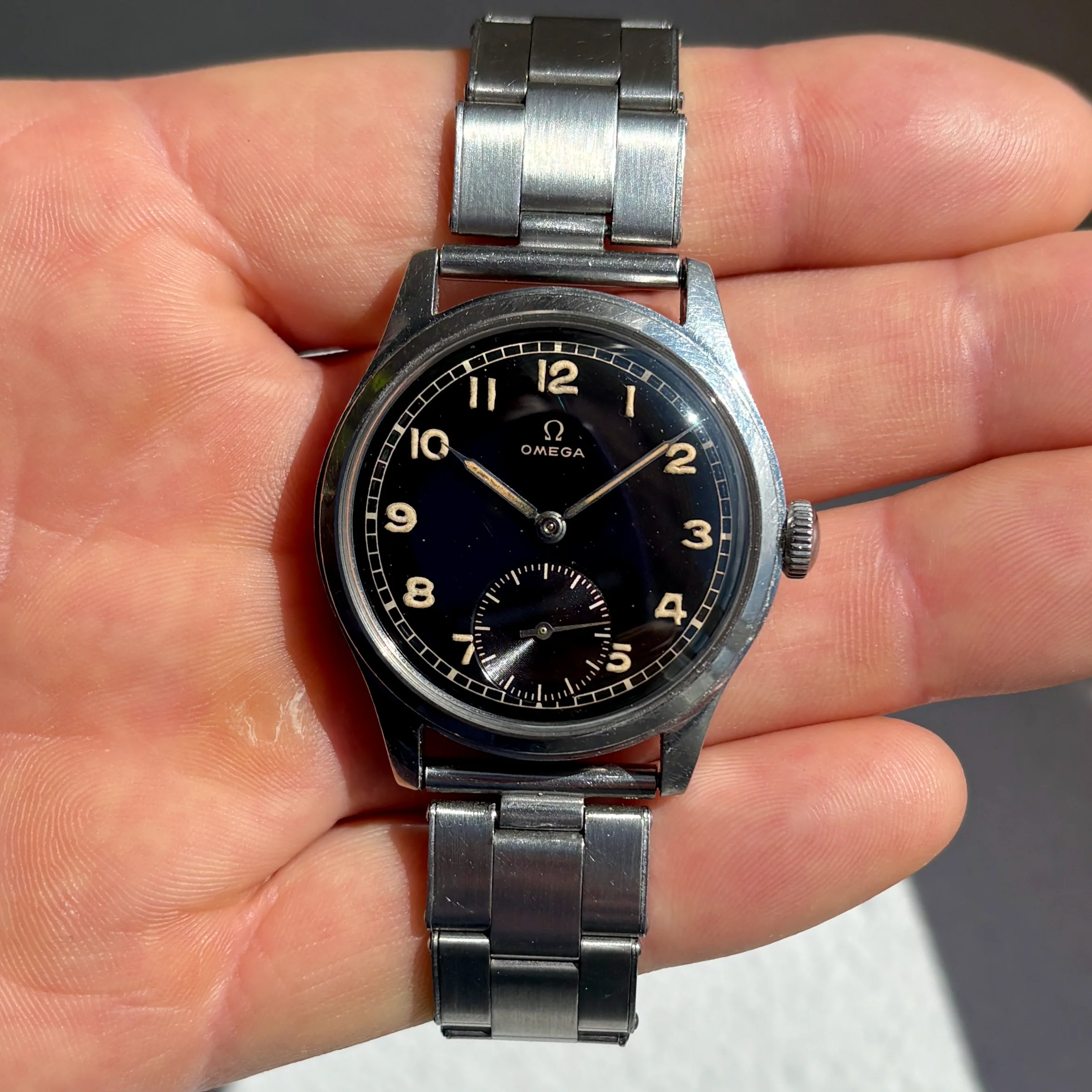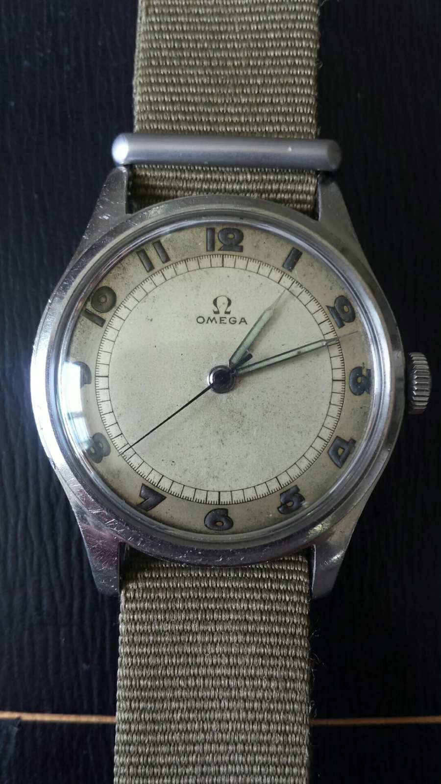Two cracks in the crystal, but otherwise in good condition for a 80 years old lady.