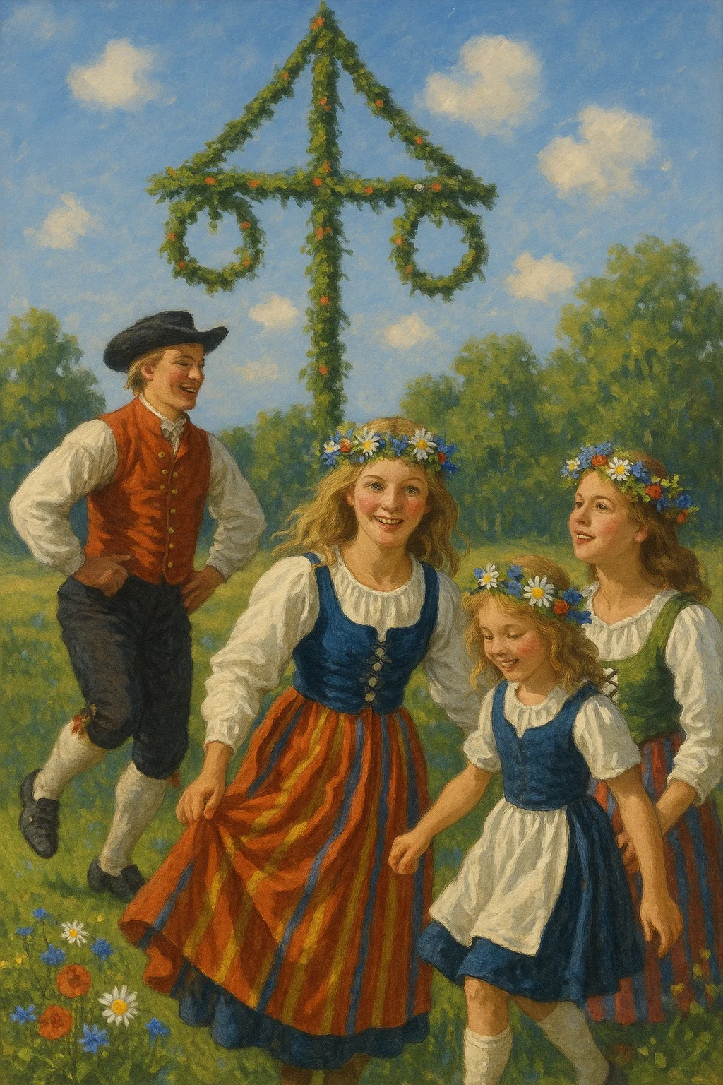 Everybody gathers around the Midsummer pole and dance...