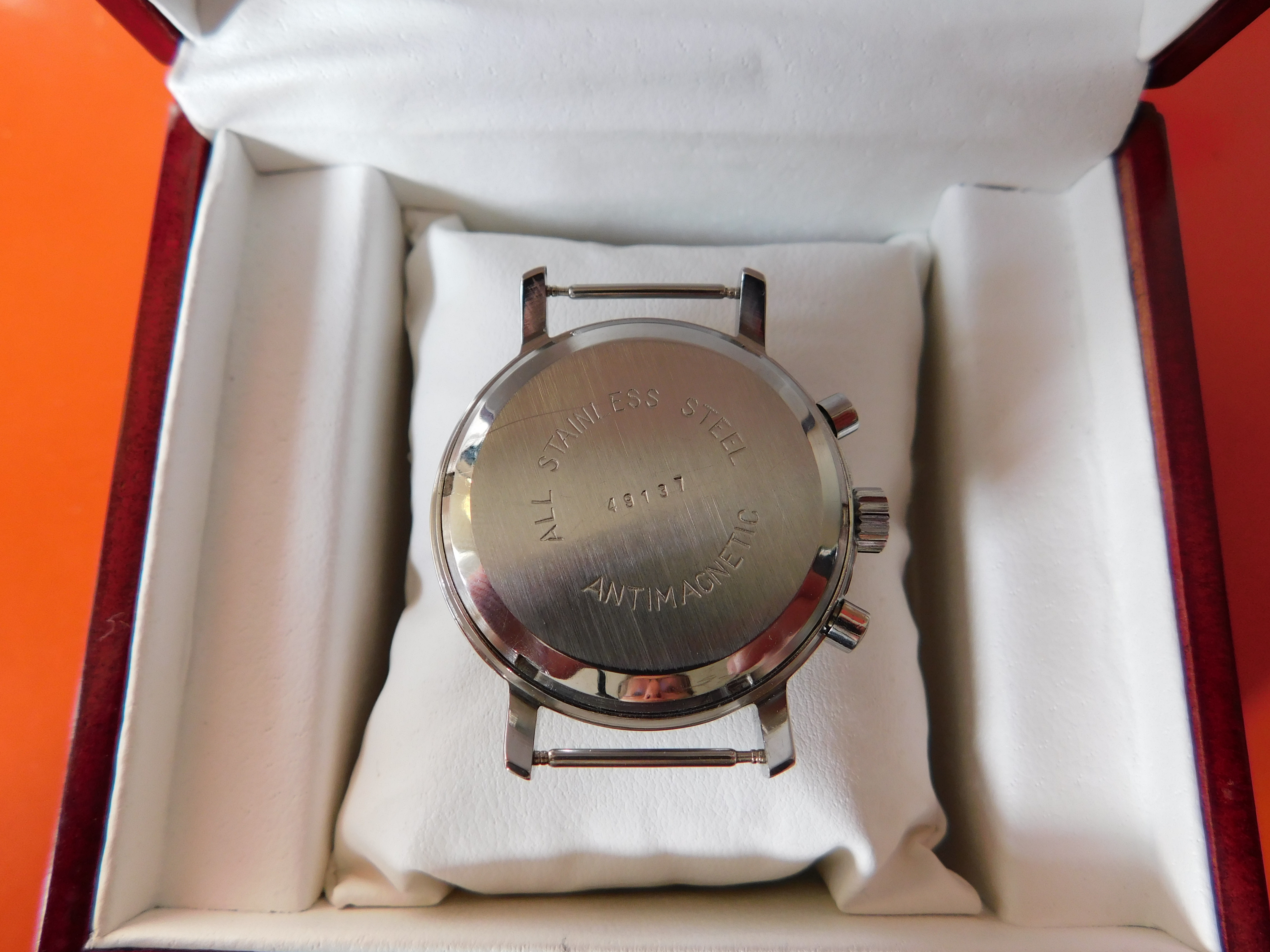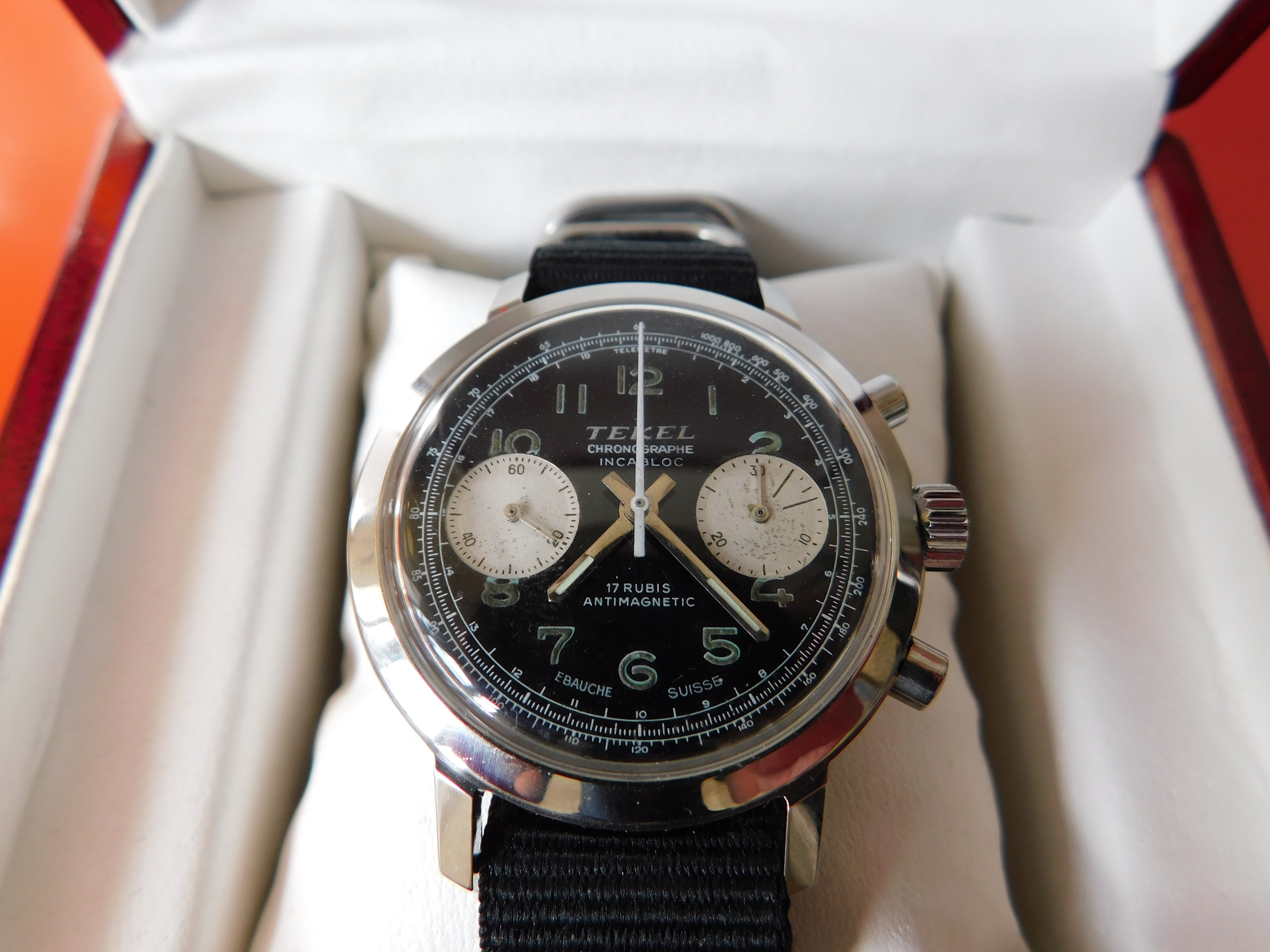 ·I am sure this has been asked before, but can someone break down for me how to interpret contrasting maker's marks on watch brands like Yema, Le Jour, Wakmann, etc.? I know the movements are Swiss (generally Valjoux or Landeron). If the dial says France, presumably the dial was made in France. But what about the cases--French, Swiss, or someone else. By way of example, I have this 7733 Chronograph by "Tekel" (now defunct, I assume), and the inside caseback is market "Anguenot Freres," which is a fairly well-known watch/clock maker from Villers-de-Lac (f. 1881). So what does this indicate in terms of manufacture, assembly, etc?