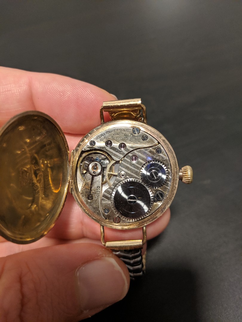 ·So, I picked this watch up earlier this month based upon some older threads in this community and was hoping to get some assistance or clarity in what I actually managed to acquire. It is hard to say what I actually paid for it as it was part of a larger lot of diverse items. My out the door cost on the entire lot was $120.00. Many of the items in the grouping date properly to the expected time period of the watch. If I were to cost average it with the wholesale value of the other items I can reasonably expect to retail in the grouping, I probably paid in the neighborhood of $15.00 for it.