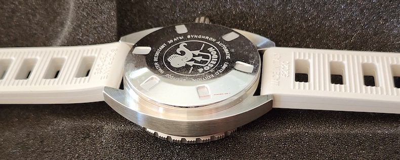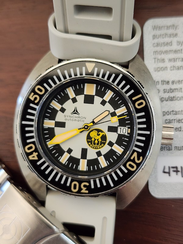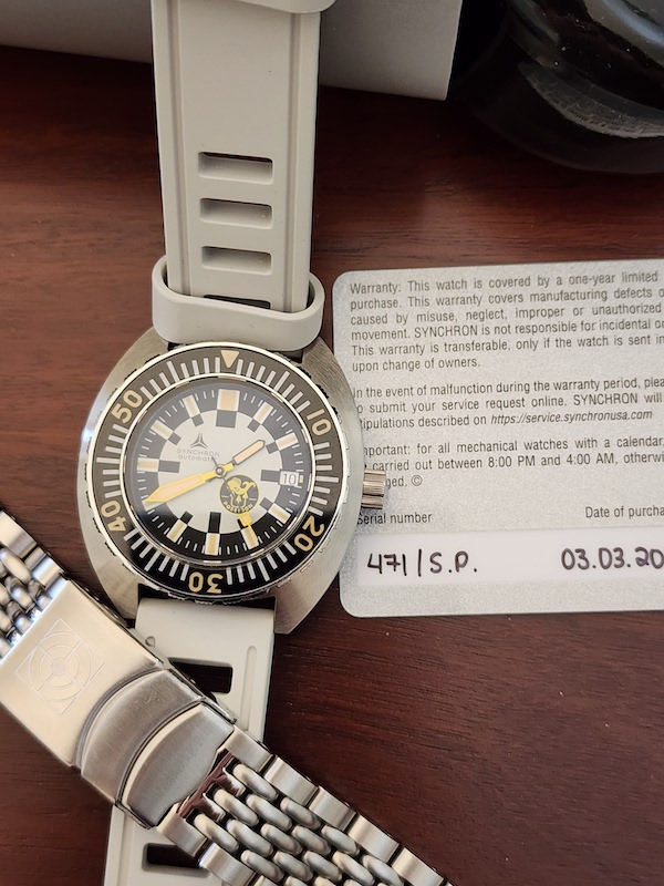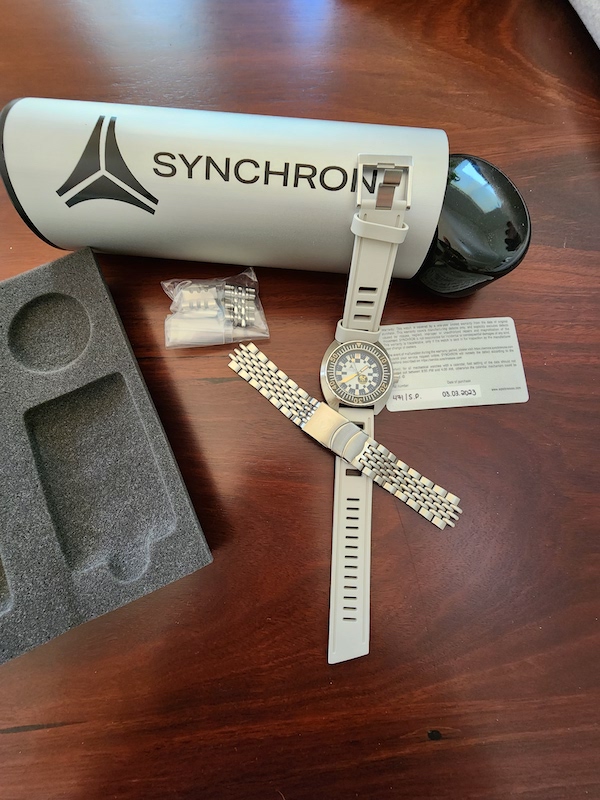 STRAP: GENUINE LIGHT GREY ISOFRANE RUBBER STRAP PLUS the additionally sourced Synchron branded Beads of Rice bracelet for the Ice Diver.