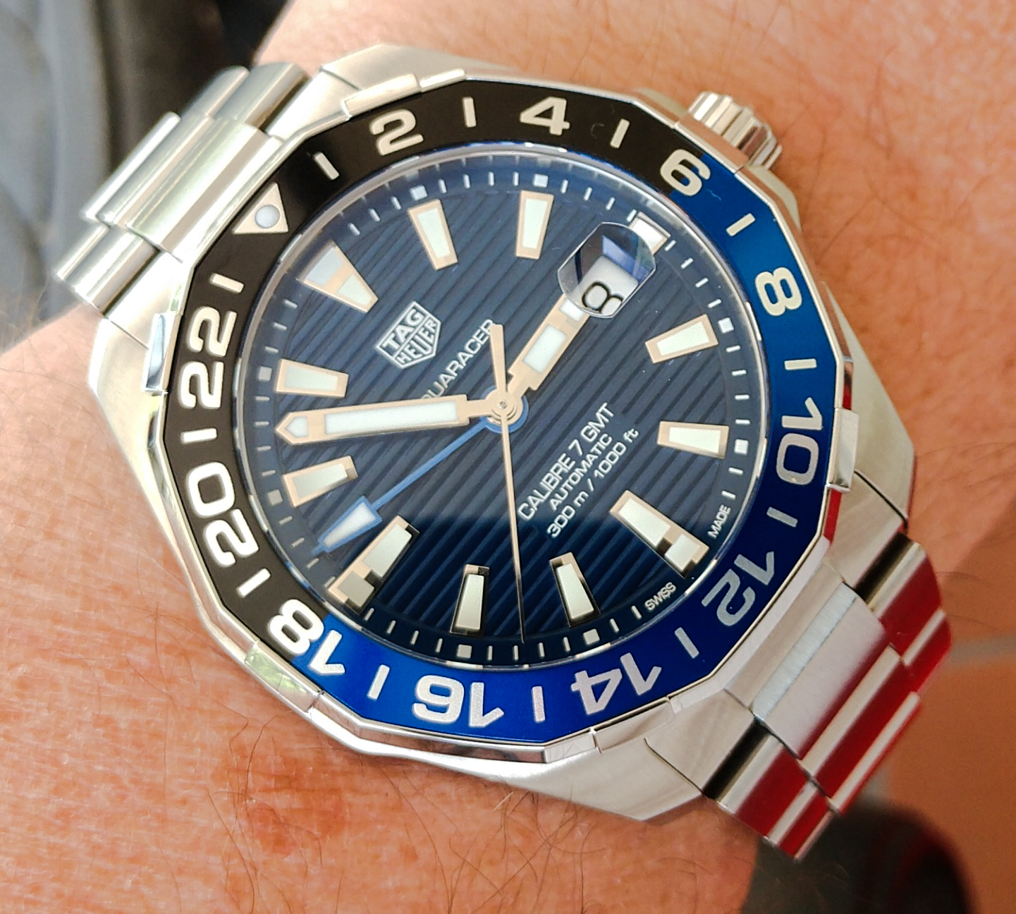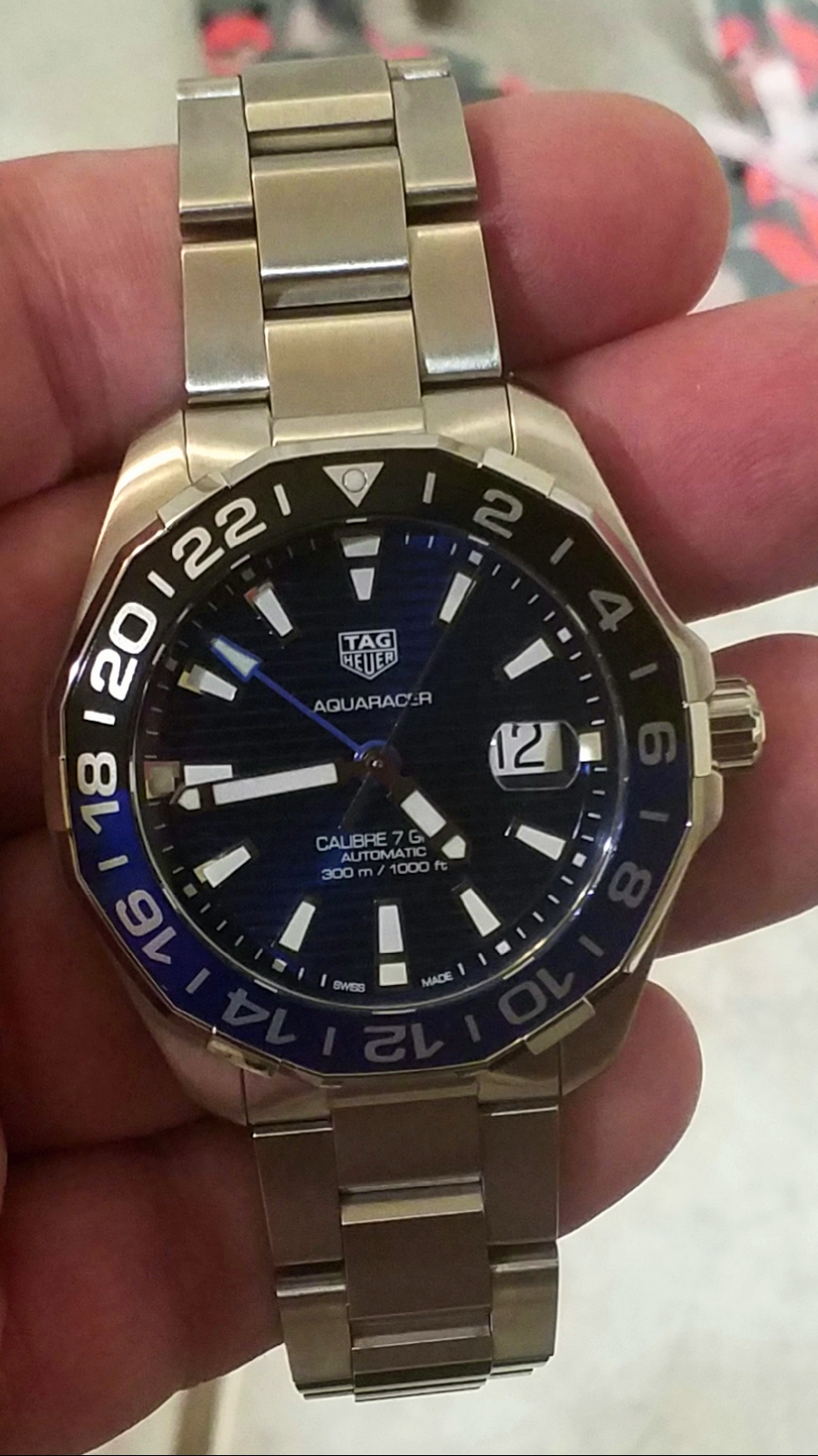 Looking at a TAG Heuer Aquaracer, Caliber 5, Automatic -300 meter, ceramic bezel.