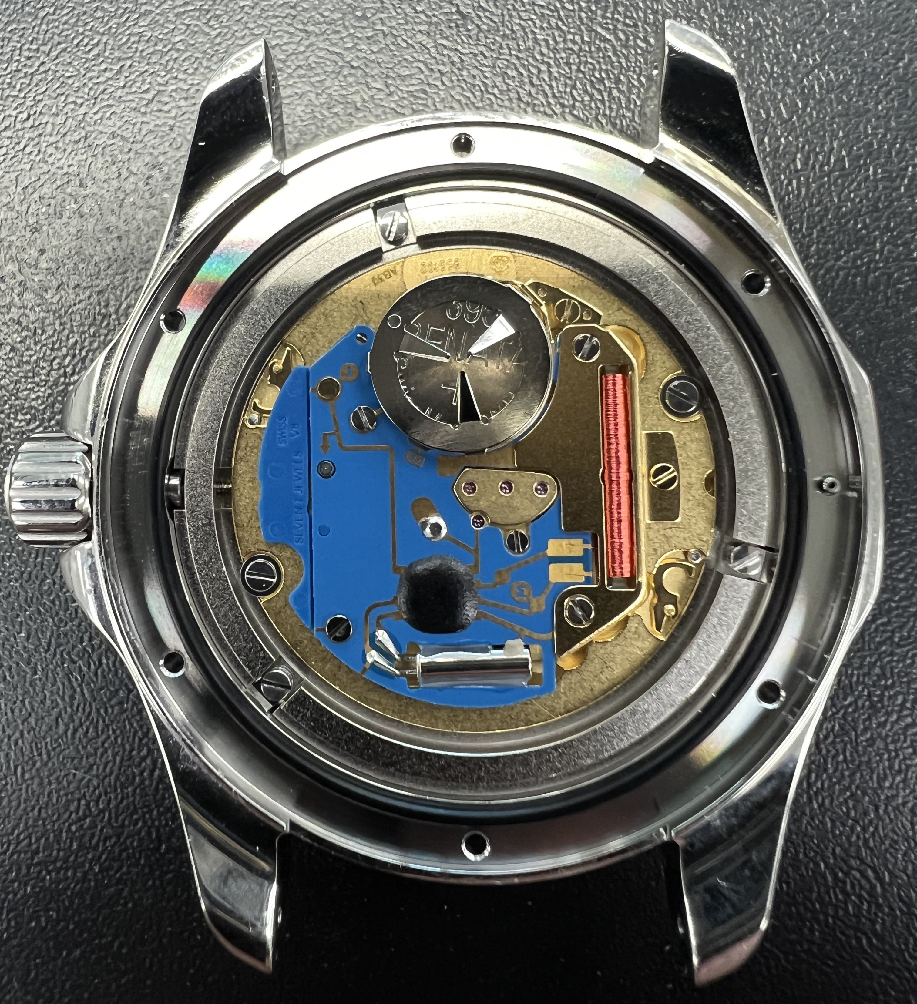 Sharing how we changed the batttery in a new style Aquaracer ref # WBP1111. My friend had taken to a couple watch repair shops and they told him they were unable to remove the back to change the battery. He would of brought directly to us but as he lives a 2.5 - 3 hour drive away and doesn't come into town often, he thought it would be easier to change in his home town. Someone had attepmted to pry the back off and scratched it but fortunately didn't casue any extensive damage.