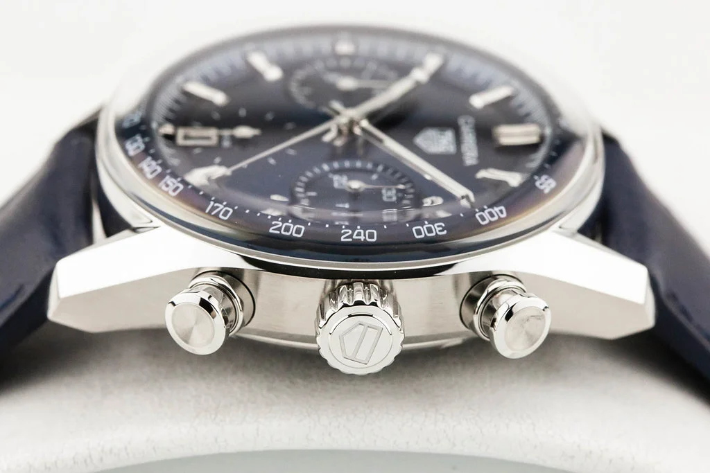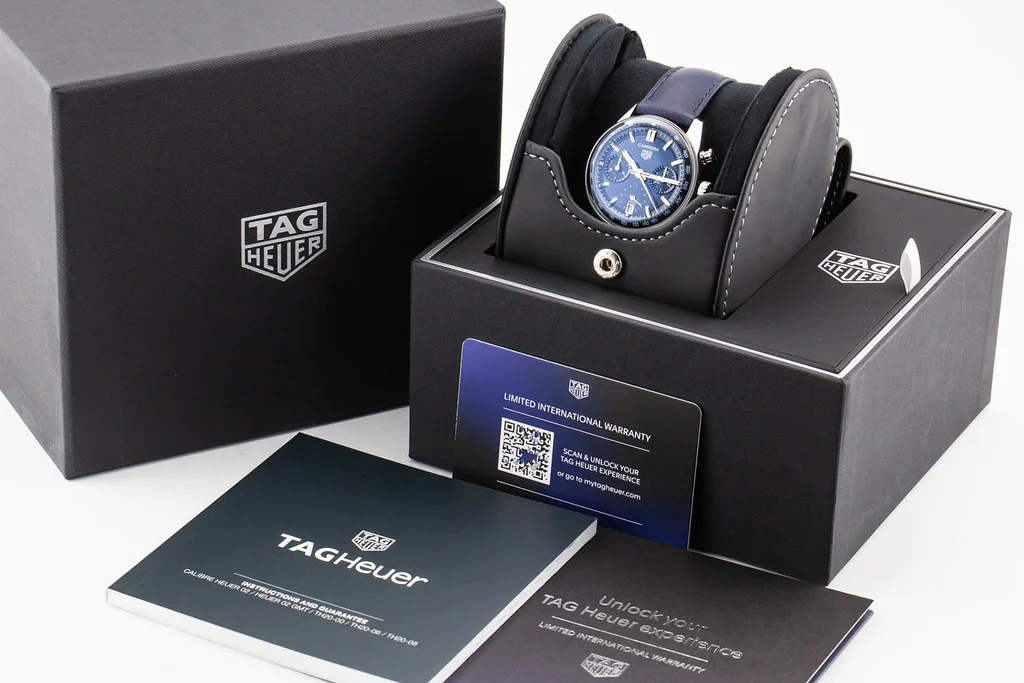 ·Up for sale is a brand new Tag Heuer Carrera Automatic Chronograph 39mm Blue Dial on Leather Strap, reference # CBS2212.FC6535. It comes complete with all boxes, papers, booklets and Tag Heuer Warranty Card dated February 2024.