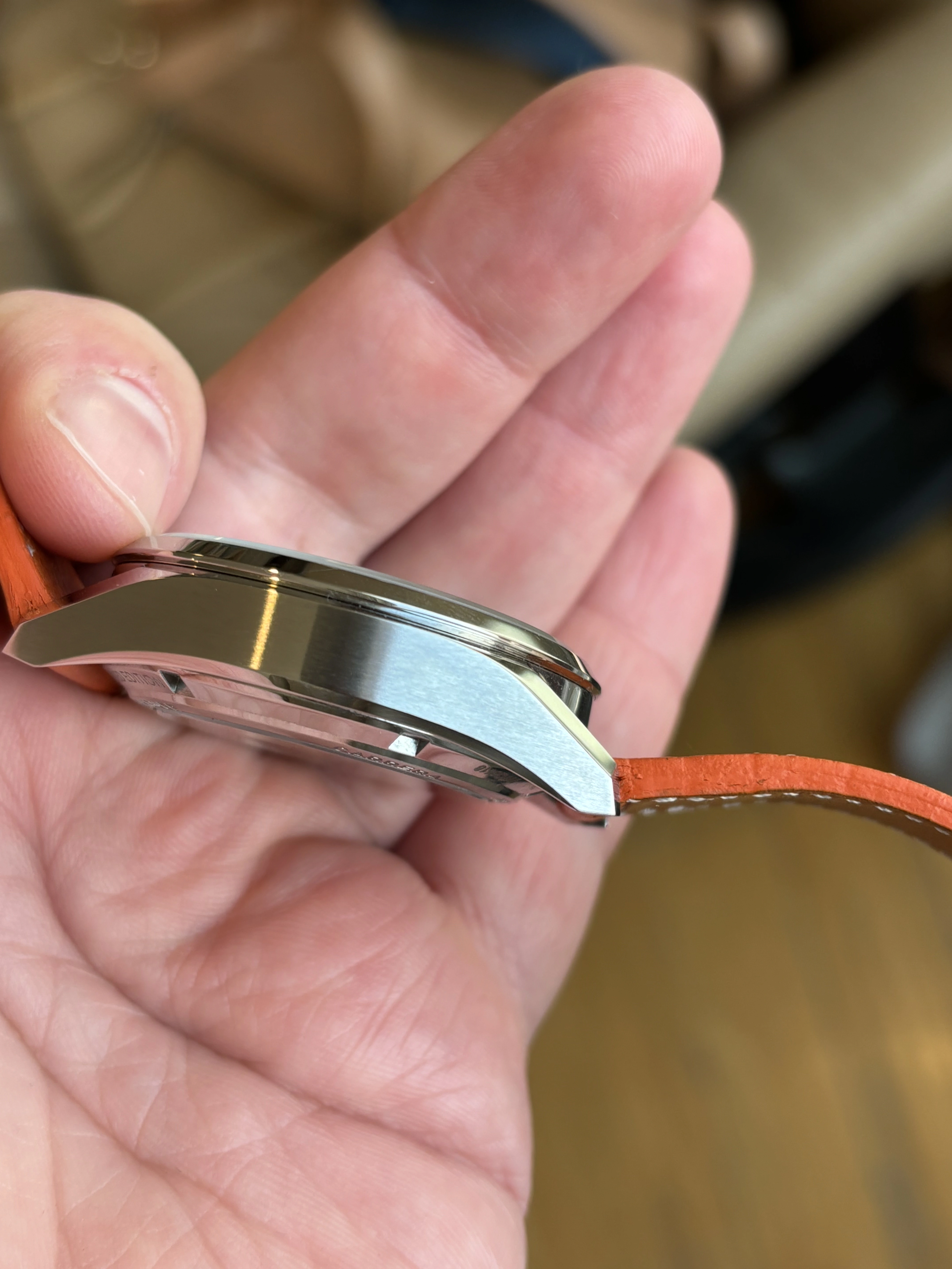 It’s in excellent condition with no marks or dings. Runs as expected for a new watch and still has a few years of warranty left.