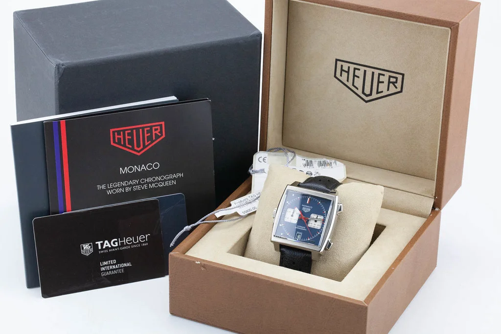 ·Up for sale is an excellent condition Tag Heuer Monaco Steve McQueen Calibre 11, reference # CAW211P.FC6356. It comes complete with all boxes, papers, hang tag and Tag Heuer International Warranty Card dated September 2017.