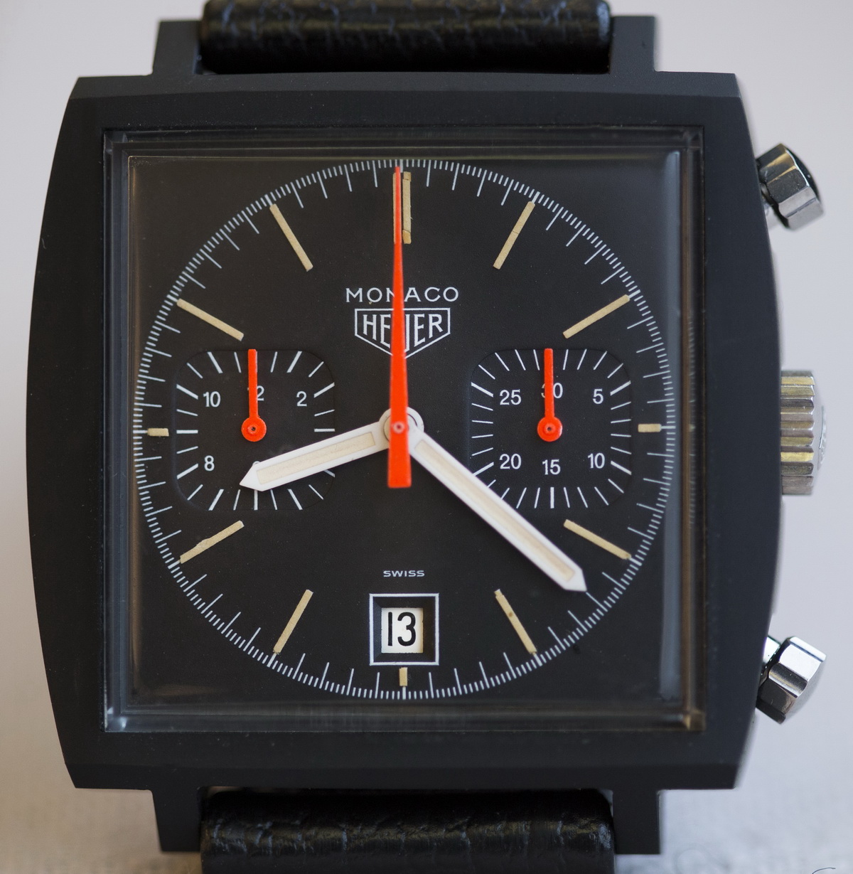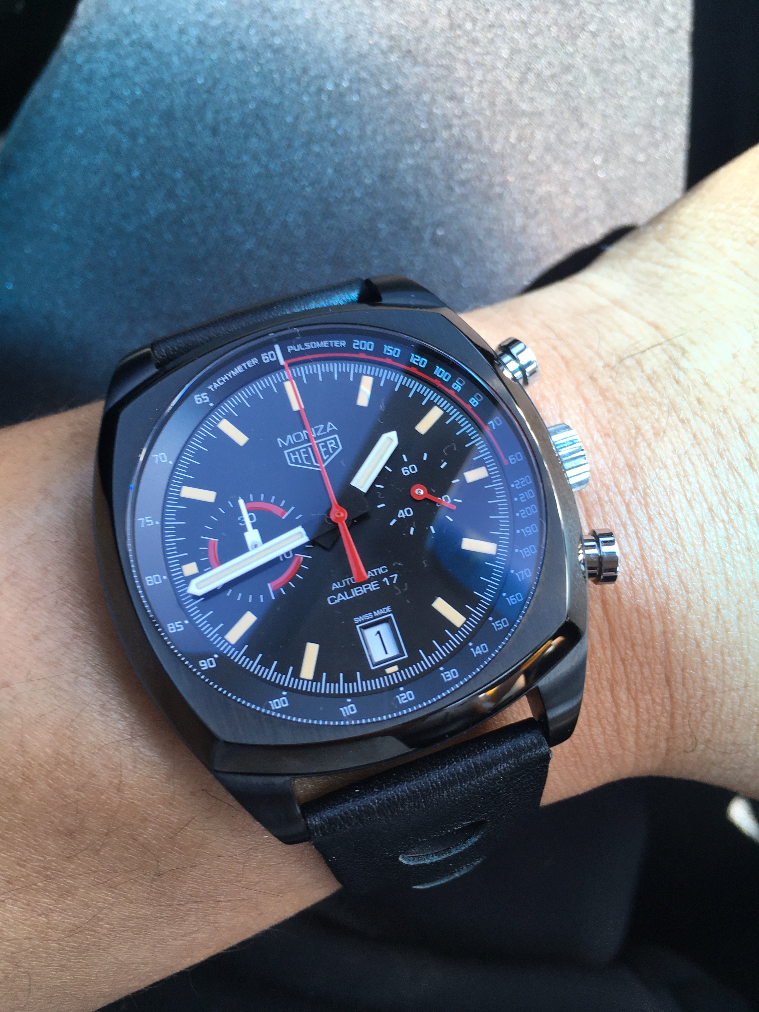 ·It seems every manufacturer is dipping into the archives and reissuing updated versions of old designs. There are some great examples, e.g. I love the Tudor Heritage Chrono blue and Oris 65 diver, but I always found something else to spend my watch funds on. Until yesterday, when I picked up the reissue of the Heuer Monza chrono. LE, Titanium and now discontinued. The strap is very comfortable, and easily/infinitely adjustable thanks to the clever clasp design.