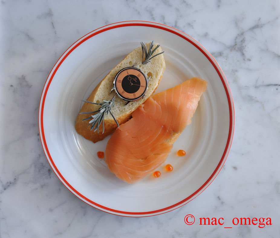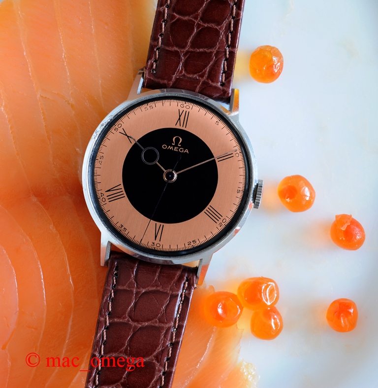 It has a salmon/black galvano sandwich dial (pun intended 😁)