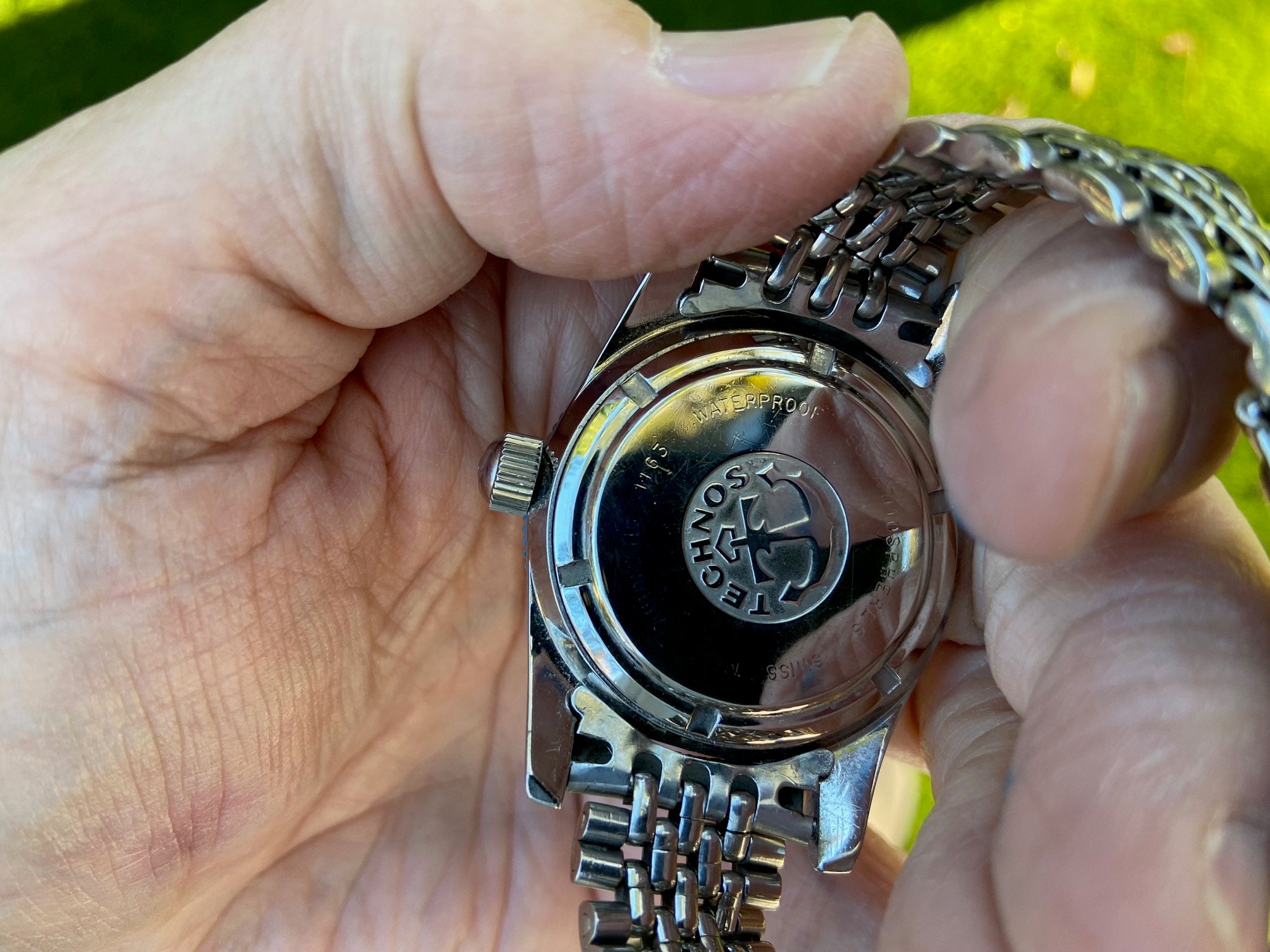 Movement: Technos signed movement was serviced in Feb 2021 by Blake Scott, winds smooth, runs well, date advances as it should, keeping excellent time.