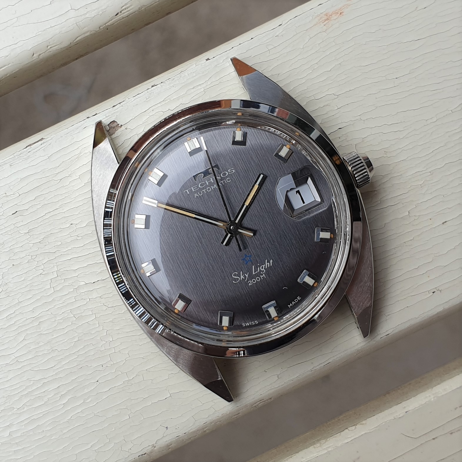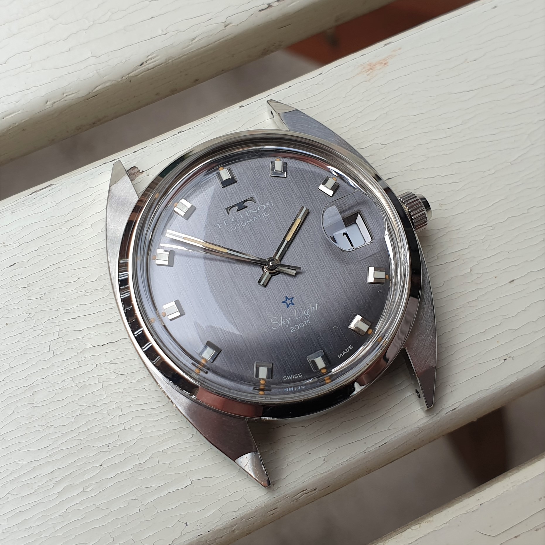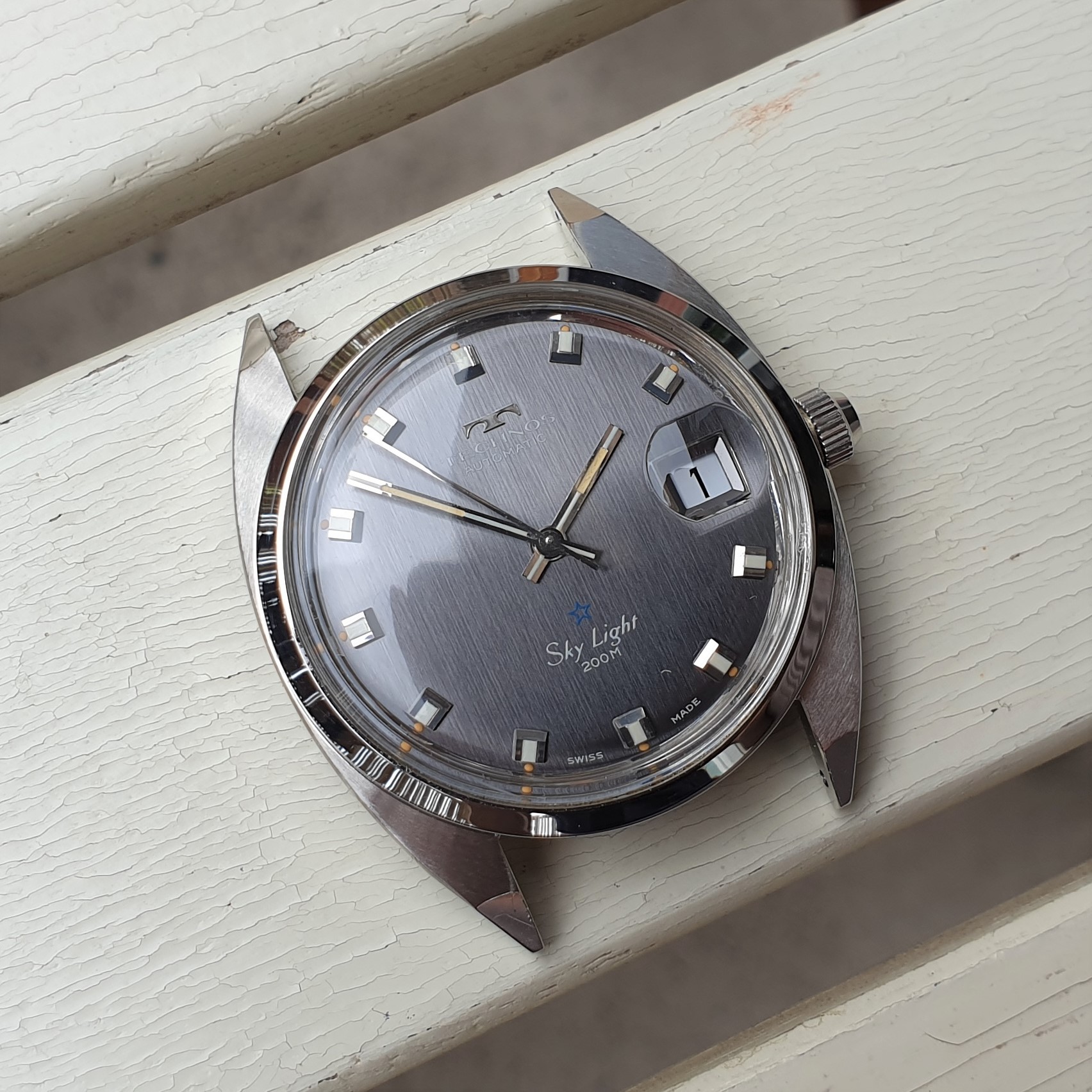 The case is in marvelous shape, best I've seen. Out of the Sky Light 200m variants that I've encountered, I can discern two types of cases (I currently own both). A bigger type, and this variant, which - at 35mm diameter and 42mm length - is substantial still. The lug width of this one is 19mm. It has a signed screw down crown, and intricate chamfers.