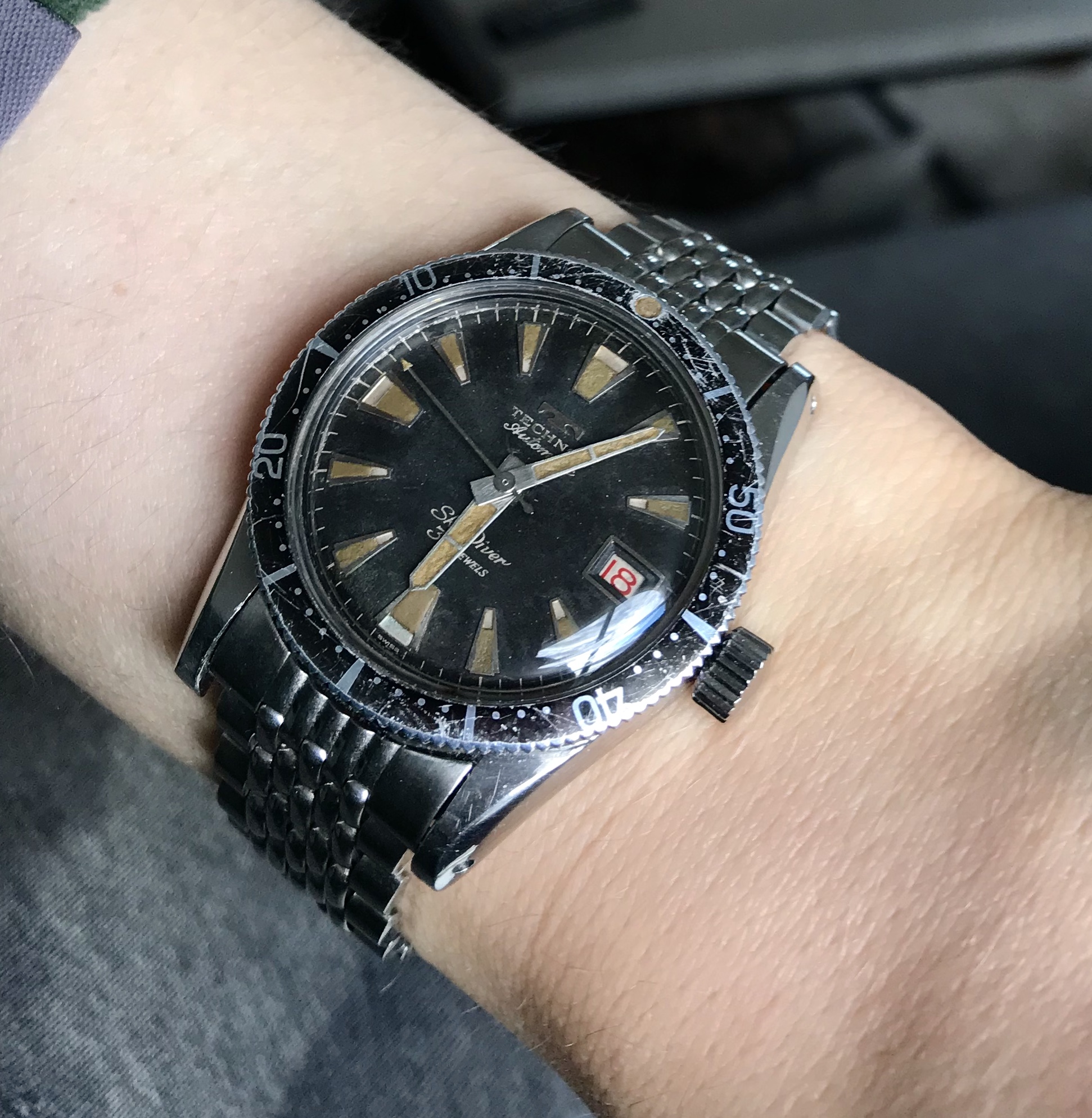 Bringing back this old thread but was curious if anybody knew whether Technos made tritium dials without the T<25 markings? I’ve seen some dials like the one in the picture with “Swiss” only but it looks like tritium more than radium on that dial.