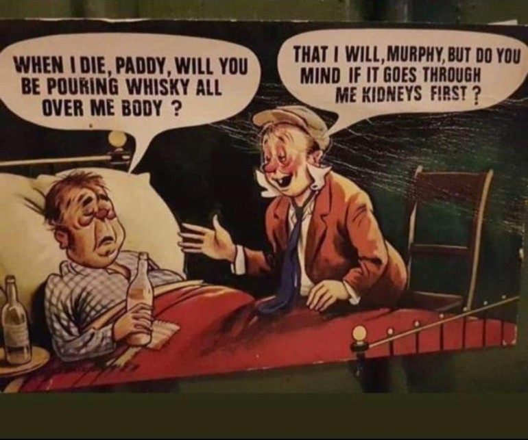 The next morning the man wakes up groggily and staggers to the side to relieve himself. He lifts his kilt and is startled to see a large blue, ribbon tied around his private parts.