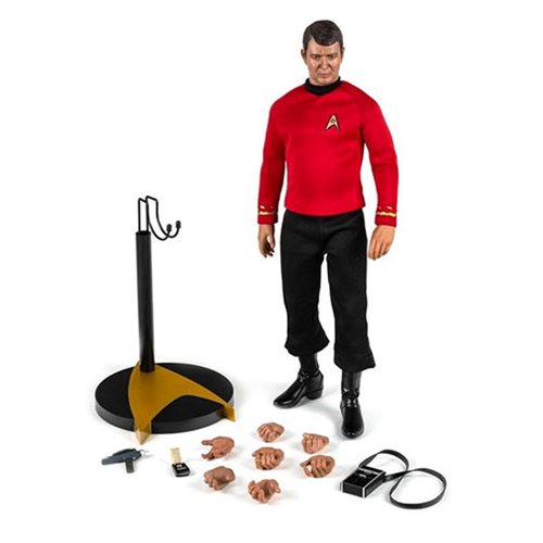A little-known fact is that actor James Doohan served in the Canadian military during WWII and lost a finger off his right hand. Although his character did not have a missing a finger, Quantum Mechanix has included one hand missing a digit to pay homage to the beloved actor.