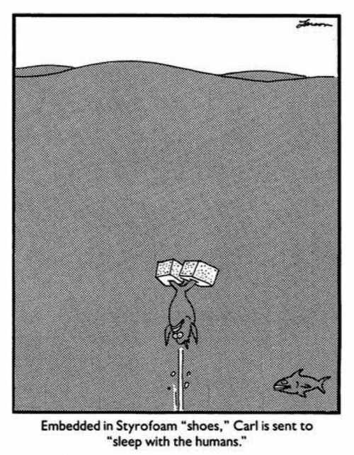 “Now listen up kid,” he says, “First thing you do is you swim full force at the human with your mouth wide open and then …at the last second … you swerve and swim away.”