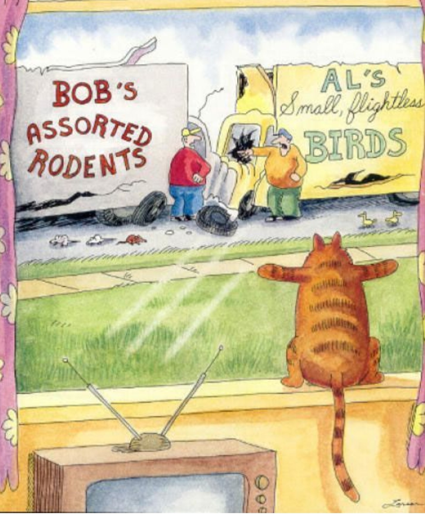 The coyote is quite an elegant character, but because of his build he has a problem conveying what he feels he is. In silhouette he looks like a dissolute Bugs. His arms and legs are much bonier than Bugs’s (when people are skinny, their elbows and shoulders look bigger), but their body shape is the same. The two characters have identical skulls, but the Coyote’s cheeks stand absurdly proud, whereas Bugs’s are confidently contained. Even the ears are similar, with the difference that the Coyote’s are a little bit broken. Wile E.’s hungry look is completed by a little pot belly.
