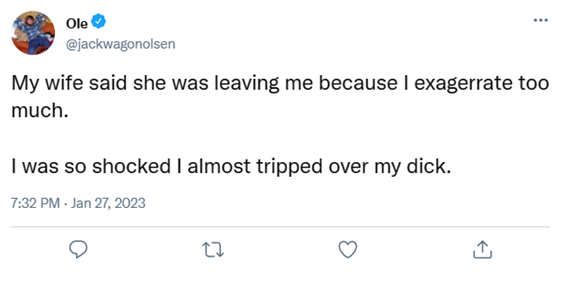 "Nothing" says the wife. "He gave me the option to bake him a cake, or sleep with him."