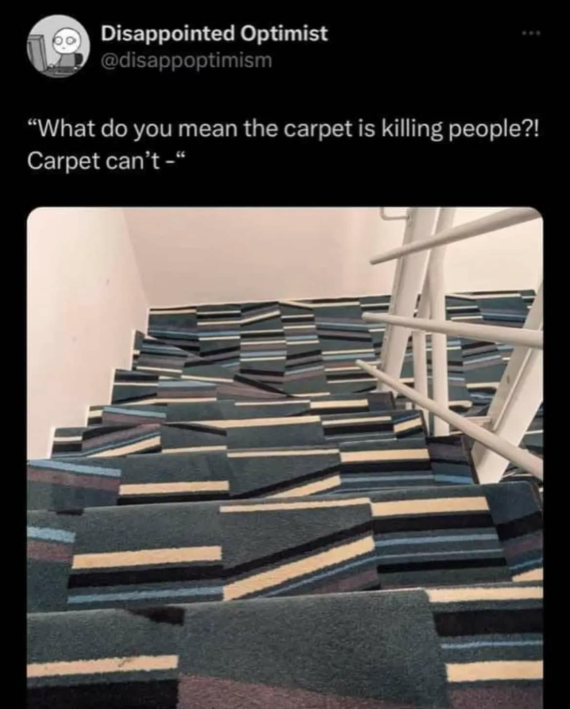 Posts 891 Likes 1,657 tapaptpat ·Aug 3, 2023 Wryfox The only possible conclusion is that the carpet doesn't want to be torpedoed. https://en.wikipedia.org/wiki/Dazzle_camouflage