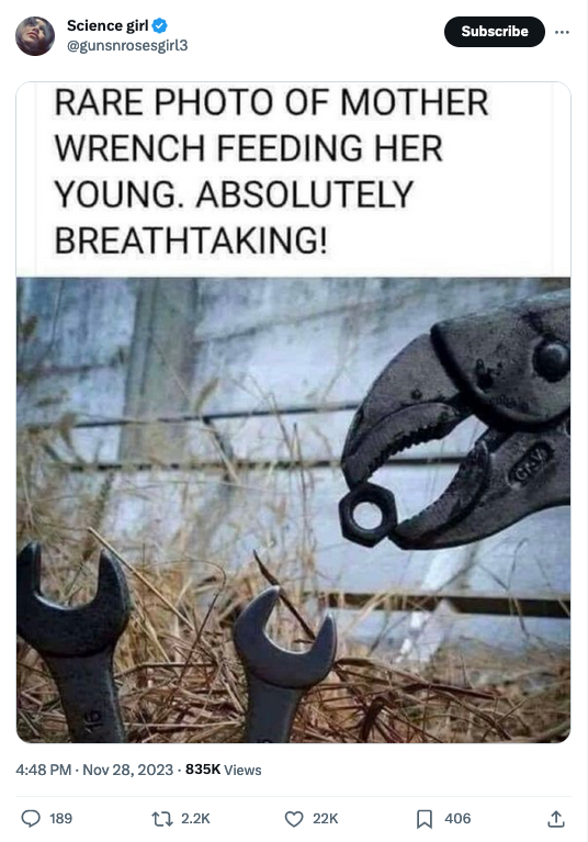 Posts 537 Likes 964 KeyWestPaw ·Nov 30, 2023 X350 XJR Speaking of tools... aah, the Whitworth wrench set. you get a 3/35th, a 1/9th, a 32/235th, and not to mention the 12/93rd. stupid triumphs. (i've had one too many of them!)