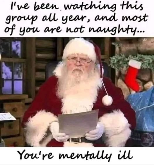 Posts 536 Likes 763 Alex_TA ·Dec 17, 2023 A boy writes a letter to Santa: ‘Dear Santa, I don’t want any new bicycle or a new iPhone. Just send me a list of girls which have behaved exclusively bad this year.’