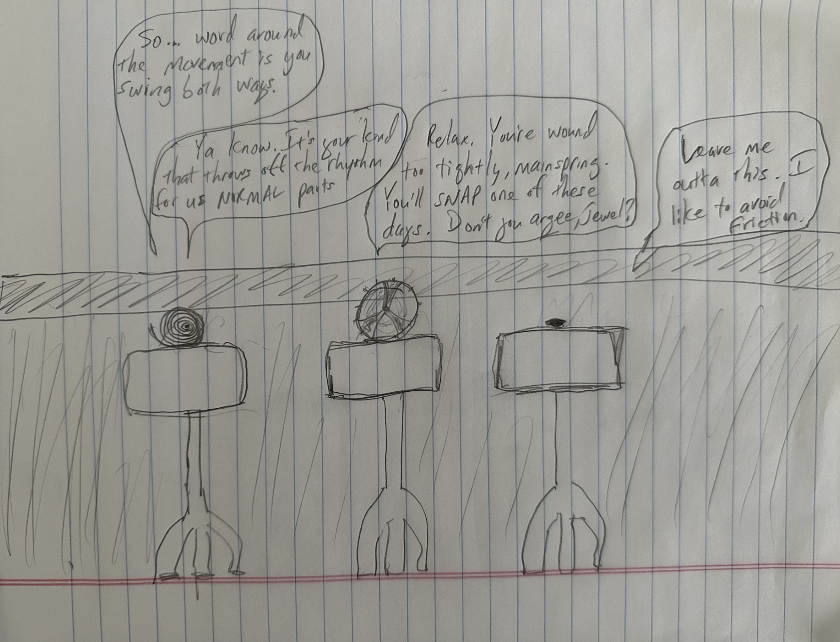 "Relax, you're wound too tightly," mainspring. "You're gonna snap one of these days. Don't you agree, jewel?"