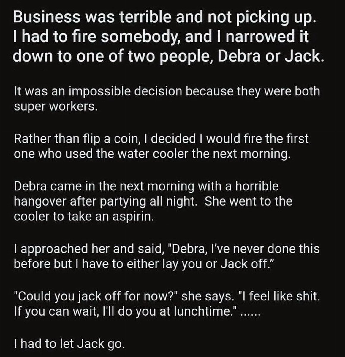 “I have a 45 caliber Colt 1911 Pistol with a seven round magazine plus one bullet in the chamber and I want to know who’s been sleeping with my Girlfriend .”