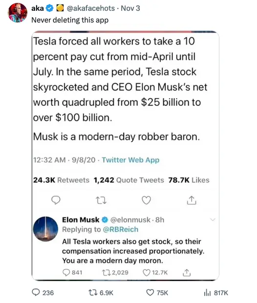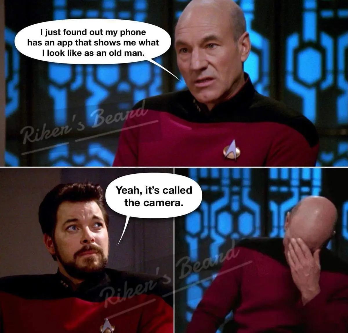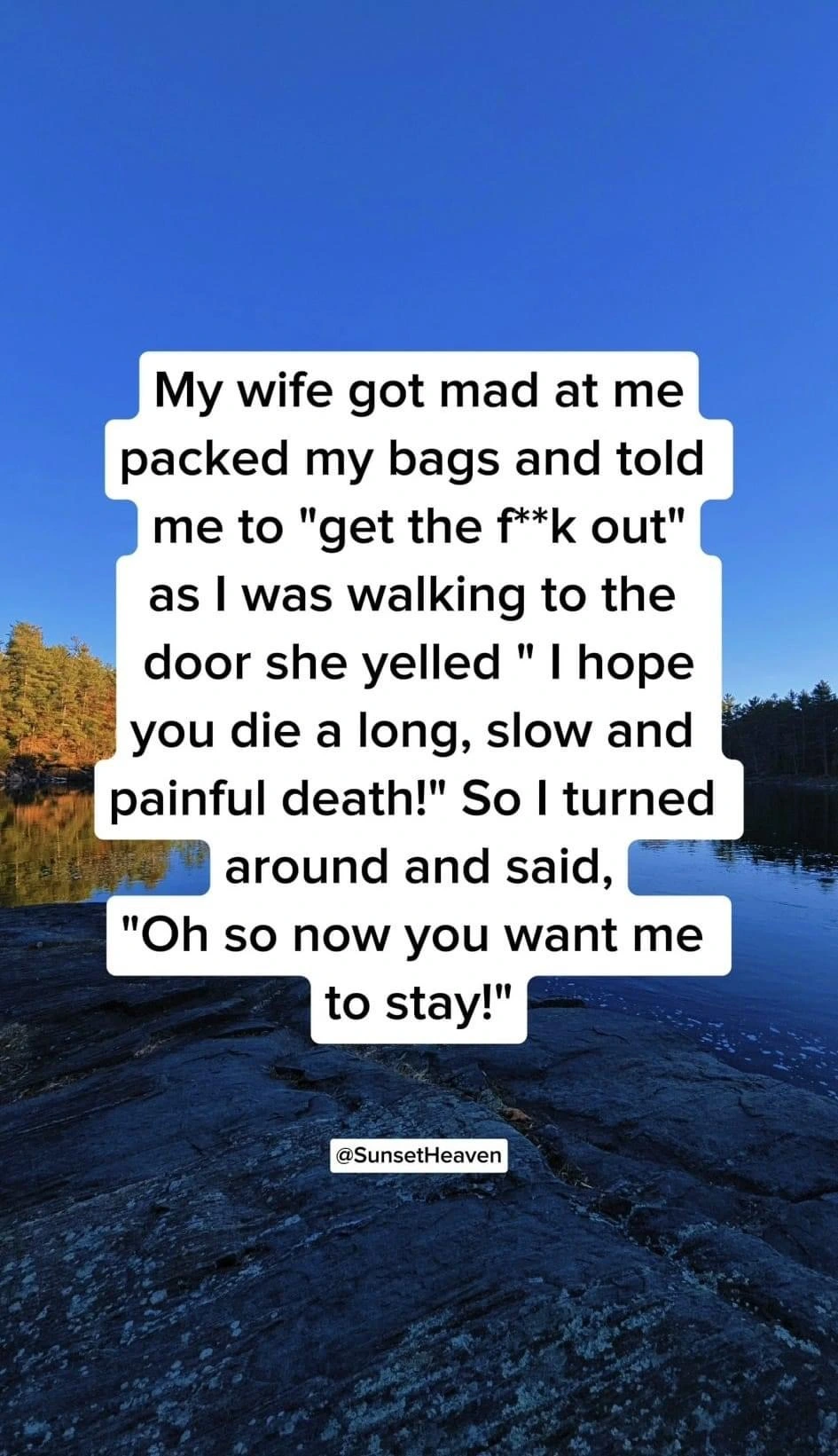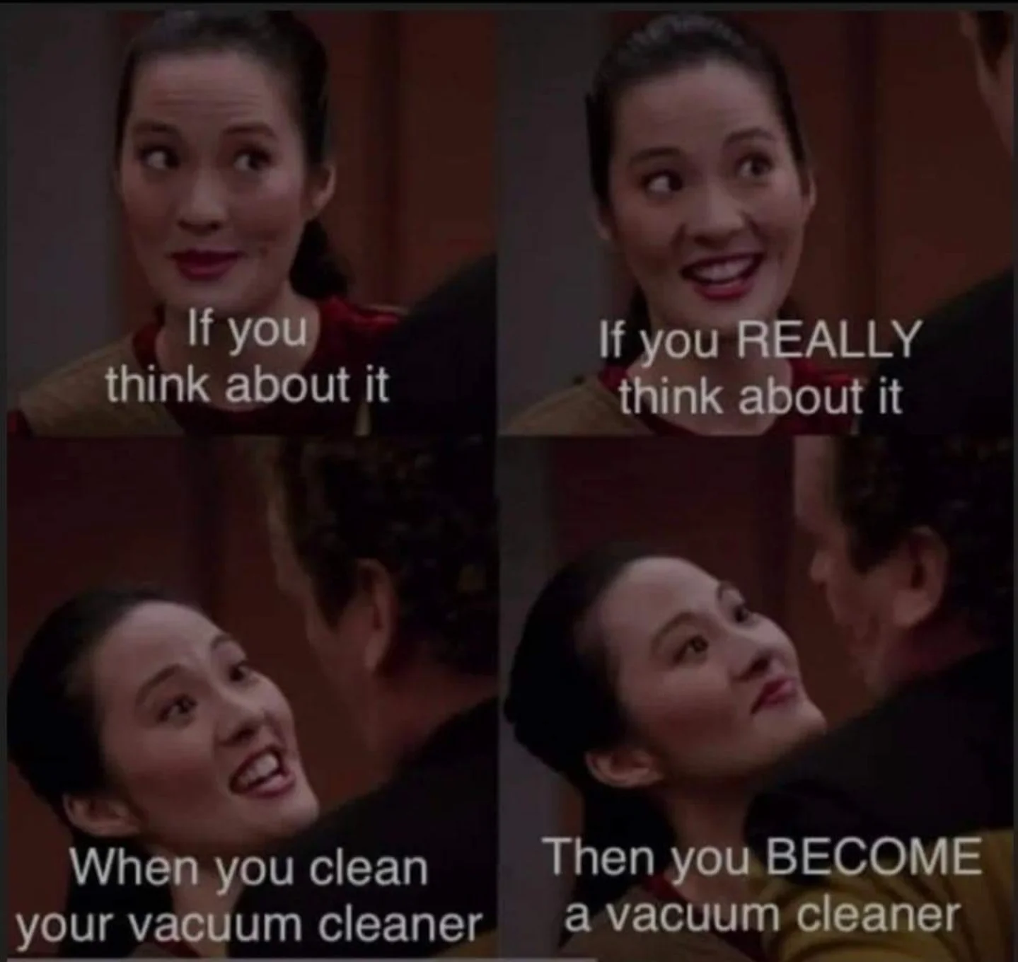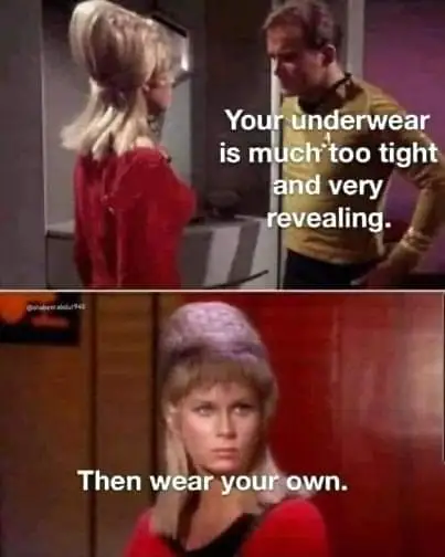He turns to her and says,