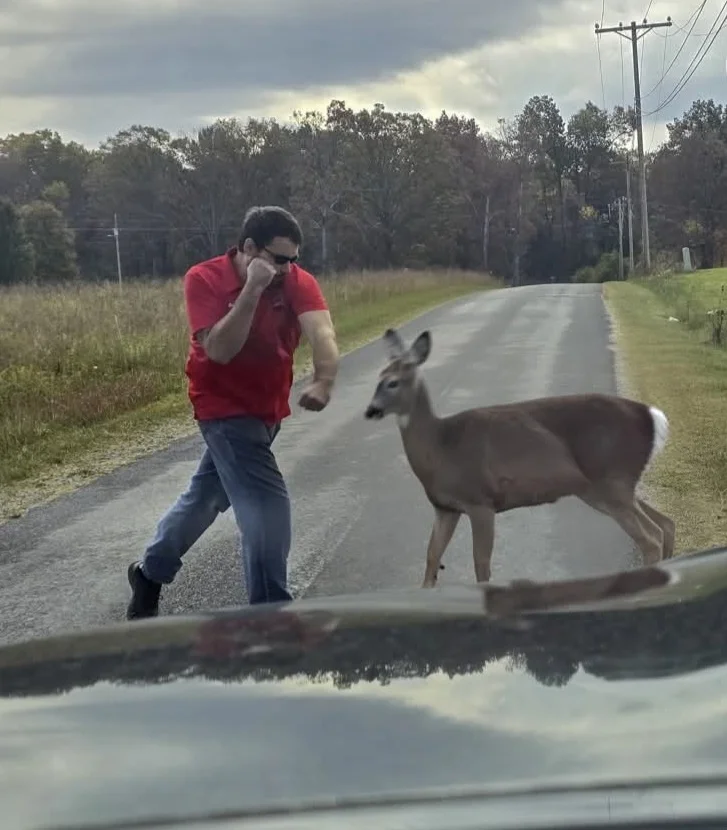 It's some bloke striking a pose, he's not actually doing anything to the deer......if he was actually harming the deer I'd be to first to want to lynch him!
