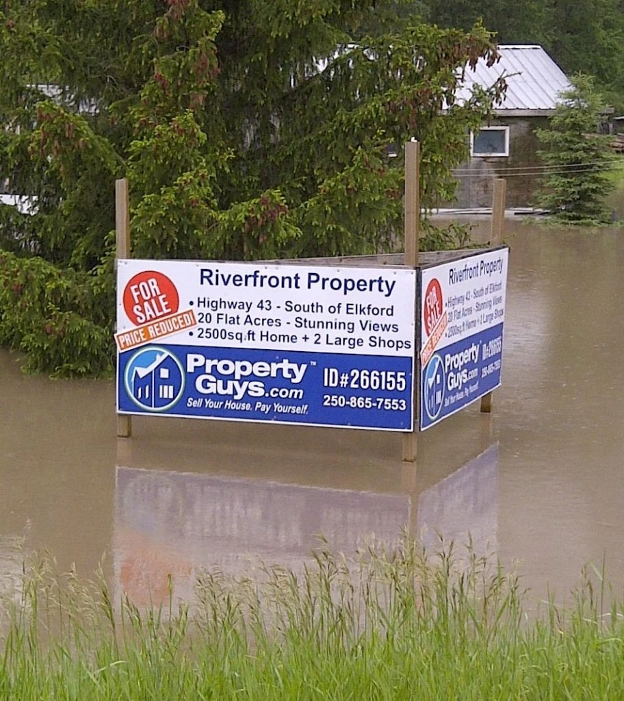 There was a pub in Bairsdale that was on the bank of the Mitchel river in a very low lying position, it had a sign that boasted that it was "The only pub in town on the river"........ During one of the many flood events of the Mitchel river, the sign was amended to "The only pub in town in the middle of the river"
