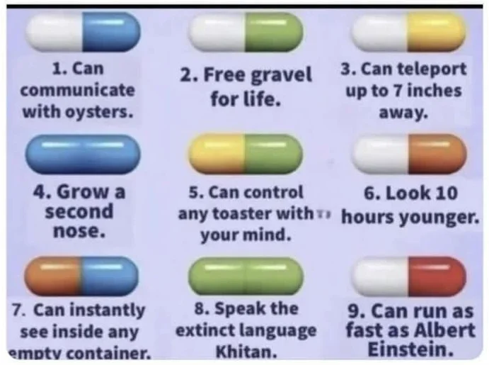Posts 2,781 Likes 4,693 Pastorbottle ·May 1, 2025 Wryfox If you had to choose only one .... #6 looking 10 hours younger could be handy when hungover #8 I already speak fluent Khitan, though only when I’m building up to a hangover!