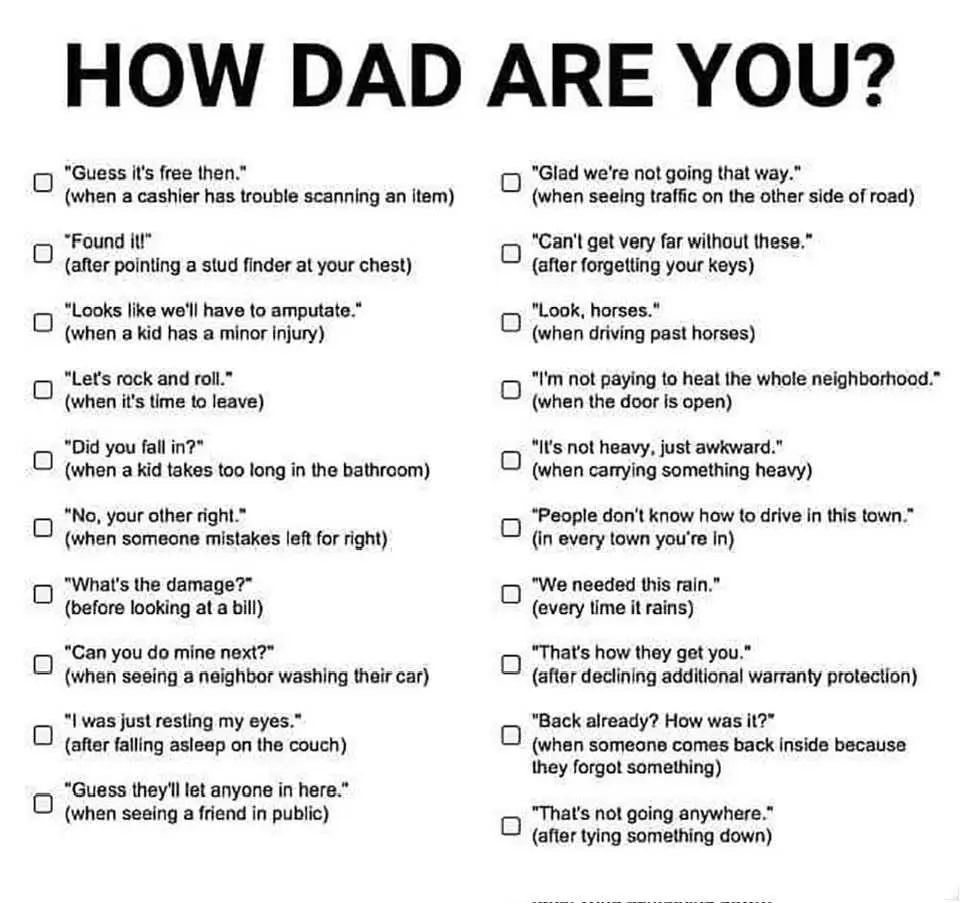 I use everyone of these except maybe two or three on a regular basis. A bit disappointing that its not my original material, but nice to know that its approved by Dads of the world.