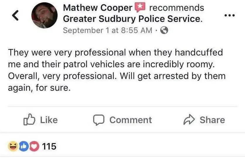 Posts 17,647 Likes 36,912 JimInOz ·Sep 25, 2025·Melbourne Australia Darn Canadians! Even the crims like their coppers, ey Steve 😅.