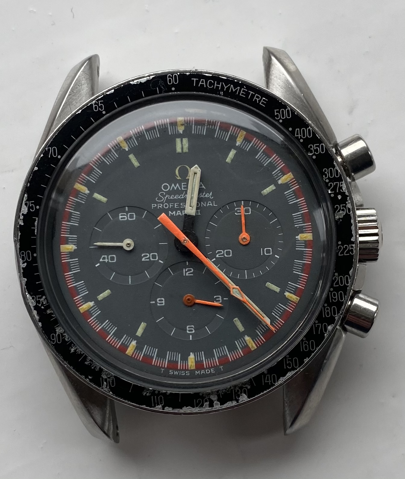 I remember someone commenting that it was a rare hand. All the hands (and dial) are from a mk2 Racing as you can see.