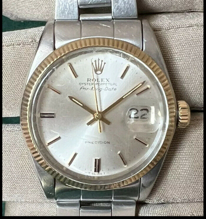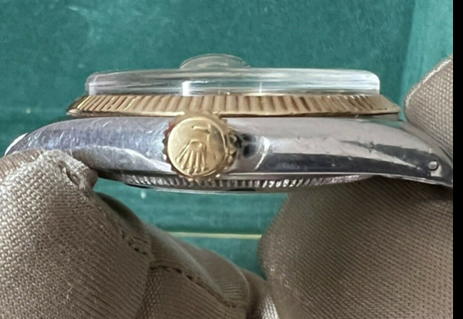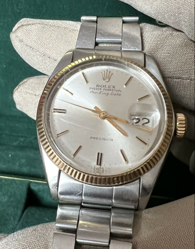 Nonetheless, I’ve been on the lookout for a vintage air-king date and in particular a steel/gold combo. I do like this watch. I’m a little unsure as to whether it’s been rubbed too much on the flanks. I think it’s right but I don’t mind confessing that my knowledge of Rolex is still very basic and I would not know if there’s anything glaringly wrong with this. I’d appreciate any advice on that front.