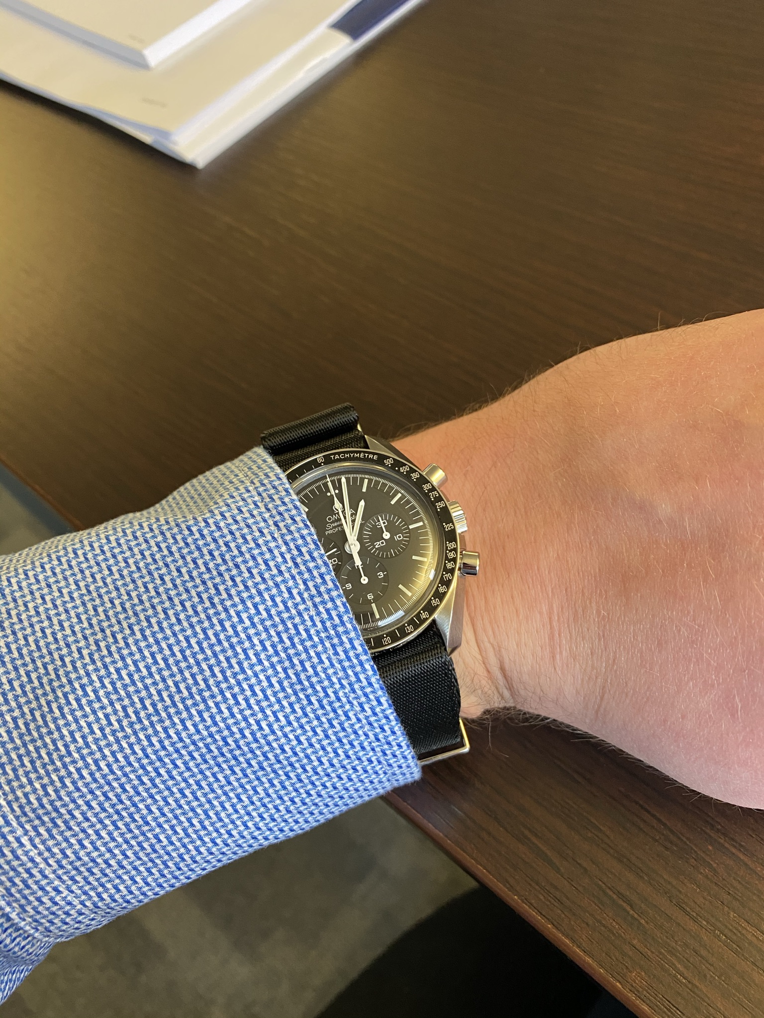 We finished the walk around inspection and settled up. After handing me the bill he thanked me for the business and then added, “nice Speedmaster, by the way”. My watch was barely peeking out under my jean jacket cuff! I was super thrilled, of course. Naturally, that opened an entirely new conversation about watches, vintage and otherwise. Made my day.