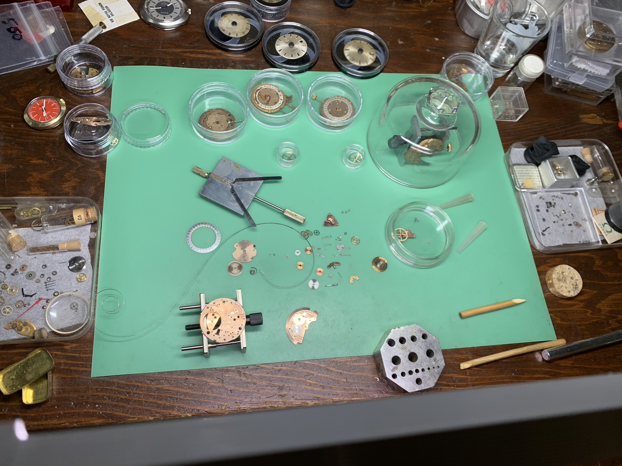 I could swap the common parts into one of the 56x movements, but I do not have rotors for them, so It might make more sense to swap the quickset parts into this one. Would need to get a manual wind mainspring though. All the ones I have and the extra barrels are for automatic. There are differences in the bridle attachments. I probably could borrow one for testing. There is something mesmerizing when these things start ticking again.