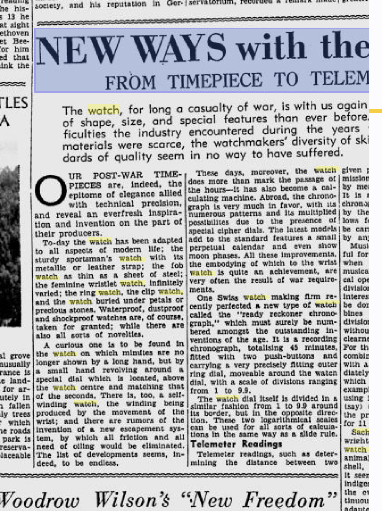 These days I’m going through a lot of historical periodicals that occasionally touch on watches, often viewed through the eyes of the 1940’s.